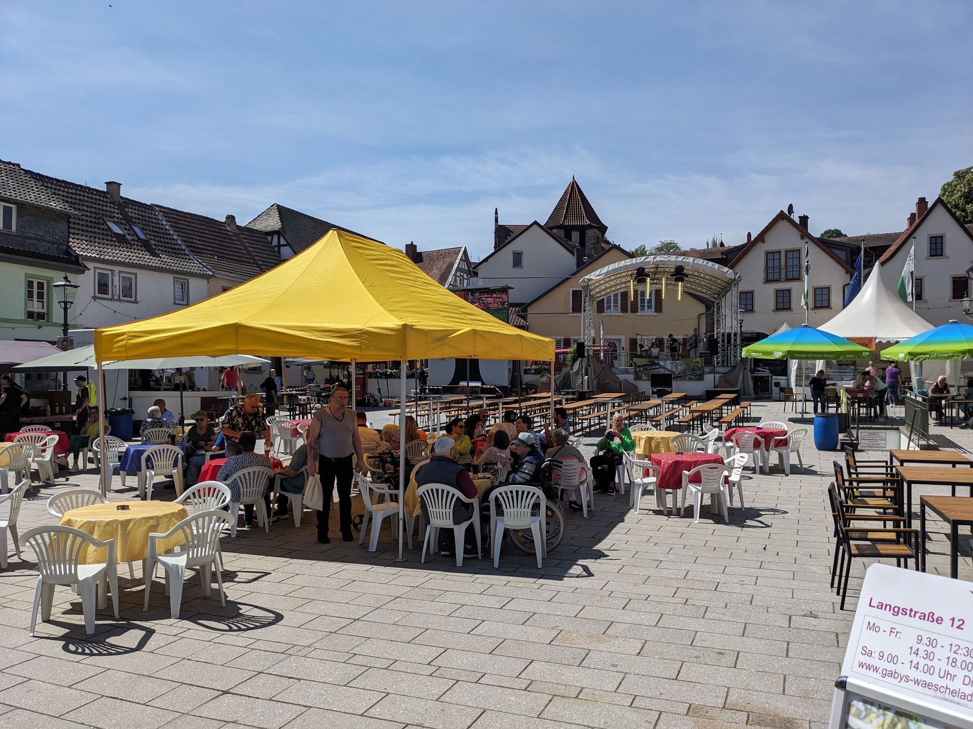 Die Neue Allee hinauf und durch die Stadt findet am Sonntag dann der Maimarkt mit diversen Händlern und verkaufsoffenem Sonntag statt. Hier die Bühne auf dem Marktplatz: