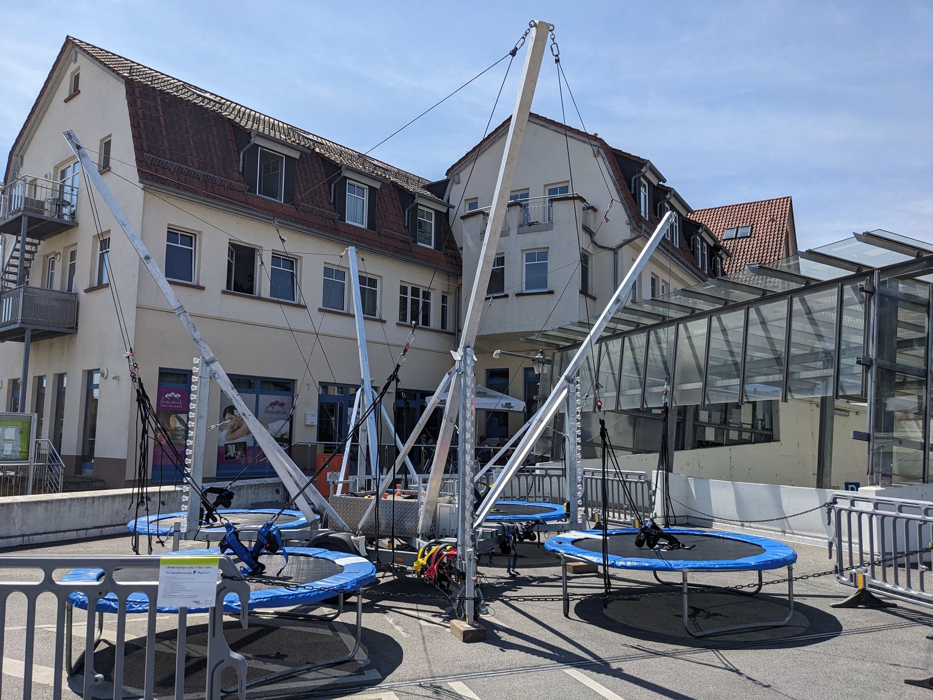 Und ich stand mit dem Bungee-Trampolin auf dem Parkdeck: