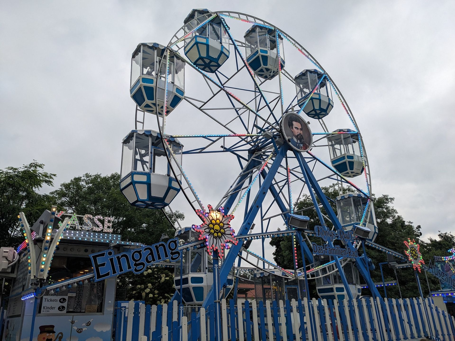Bevor es für uns in Urlaub ging haben wir am Freitag noch schnell die Wäldcheskerb in Oppenheim besucht. Die Beschickung war der letztjährigen sehr ähnlich, nur dass der Scheibenwischer weggefallen ist. Und Barth den anderen Skooter aufgebaut hat.