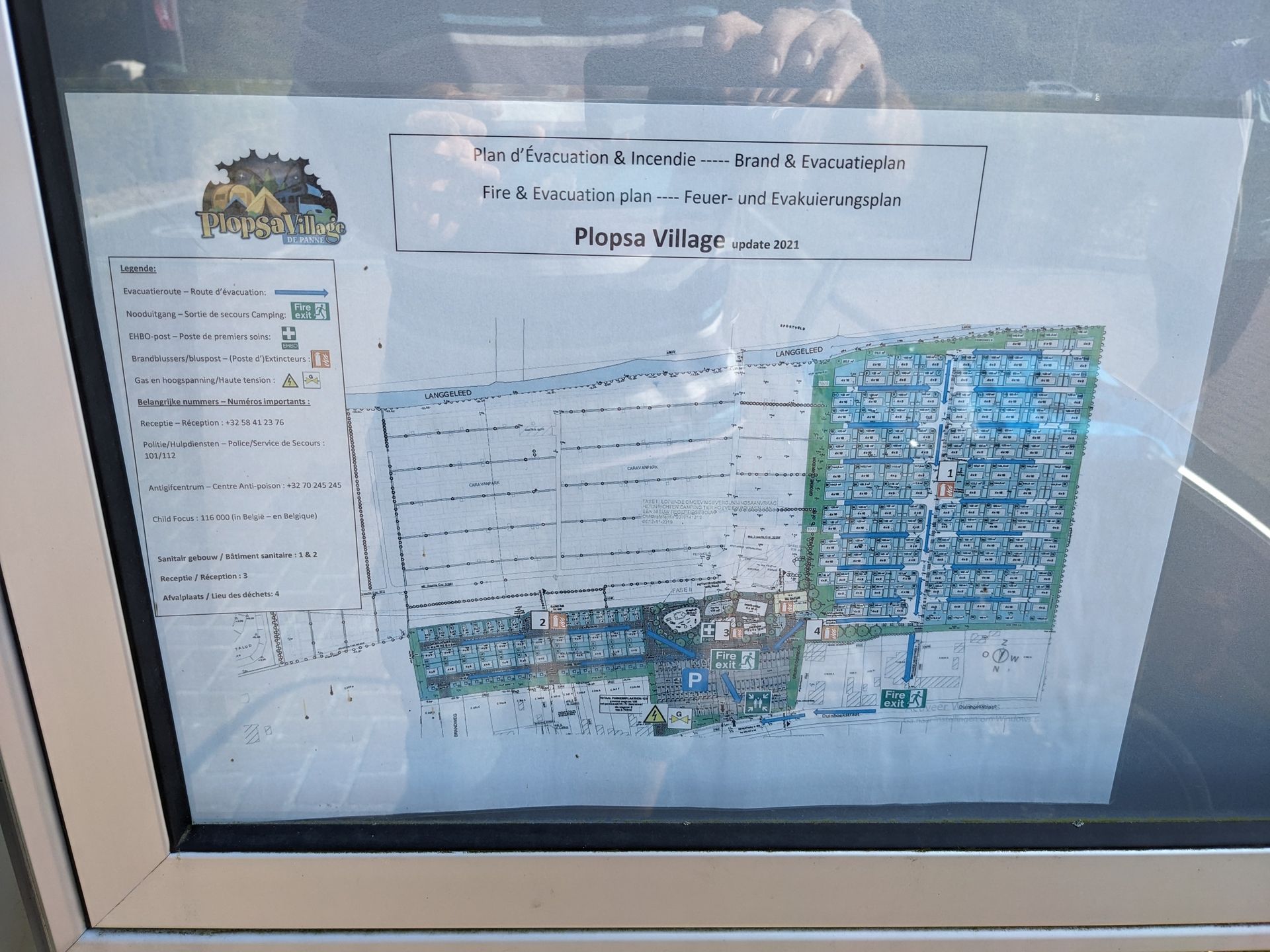 Kurzer Überblick: Unten in der Mitte ist der zentrale Bereich mit Rezeption, links der Streifen ist der Plopsa-Camping, der ausgegraute Bereich ist die Baustelle für das Feriendorf, rechts der größere Platzteil ist Dauercamping und Hütten:
