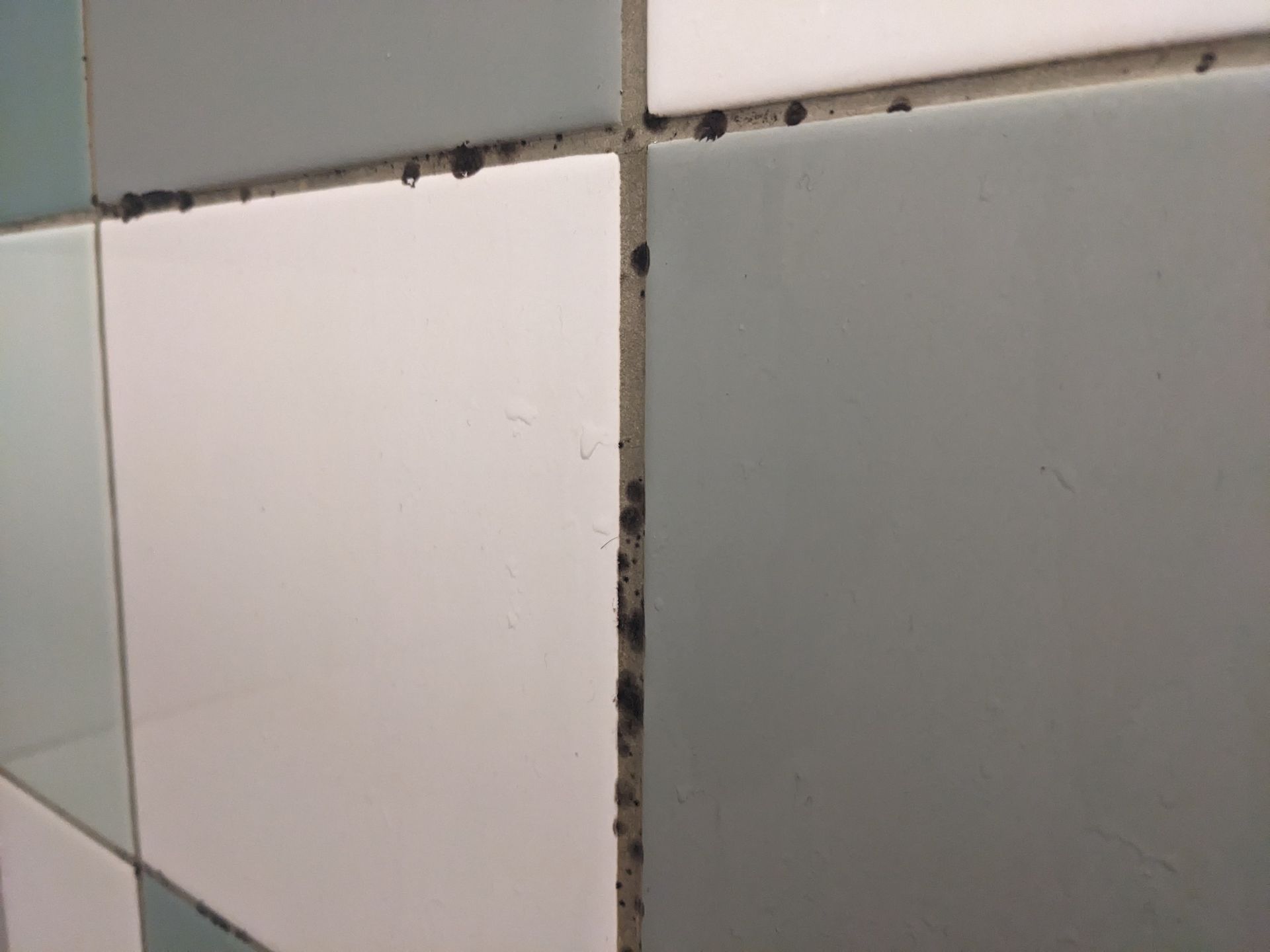 Mein erster Gedanke: Die haben doch auch Schwimmbäder und müssten wissen, wie man dauer-nasse Bereiche reinigen (und desinfizieren!) muss. Wenn man genau hinschaut, sieht man aber, dass der Schimmel sogar schon auf die glatte Fliesenoberfläche gewachsen ist. Das spricht dann für insgesamt unzureichende Reinigung. Und über unseren Aufenthalt stellte sich heraus: Von Sonntag bis Freitag ist hier nicht ein einziges Mal geputzt worden! Nur einmal wurden die Mülleimer geleert. Auch wenn nur wenige Plätze auf dieser Platzseite besetzt waren geht das gar nicht!