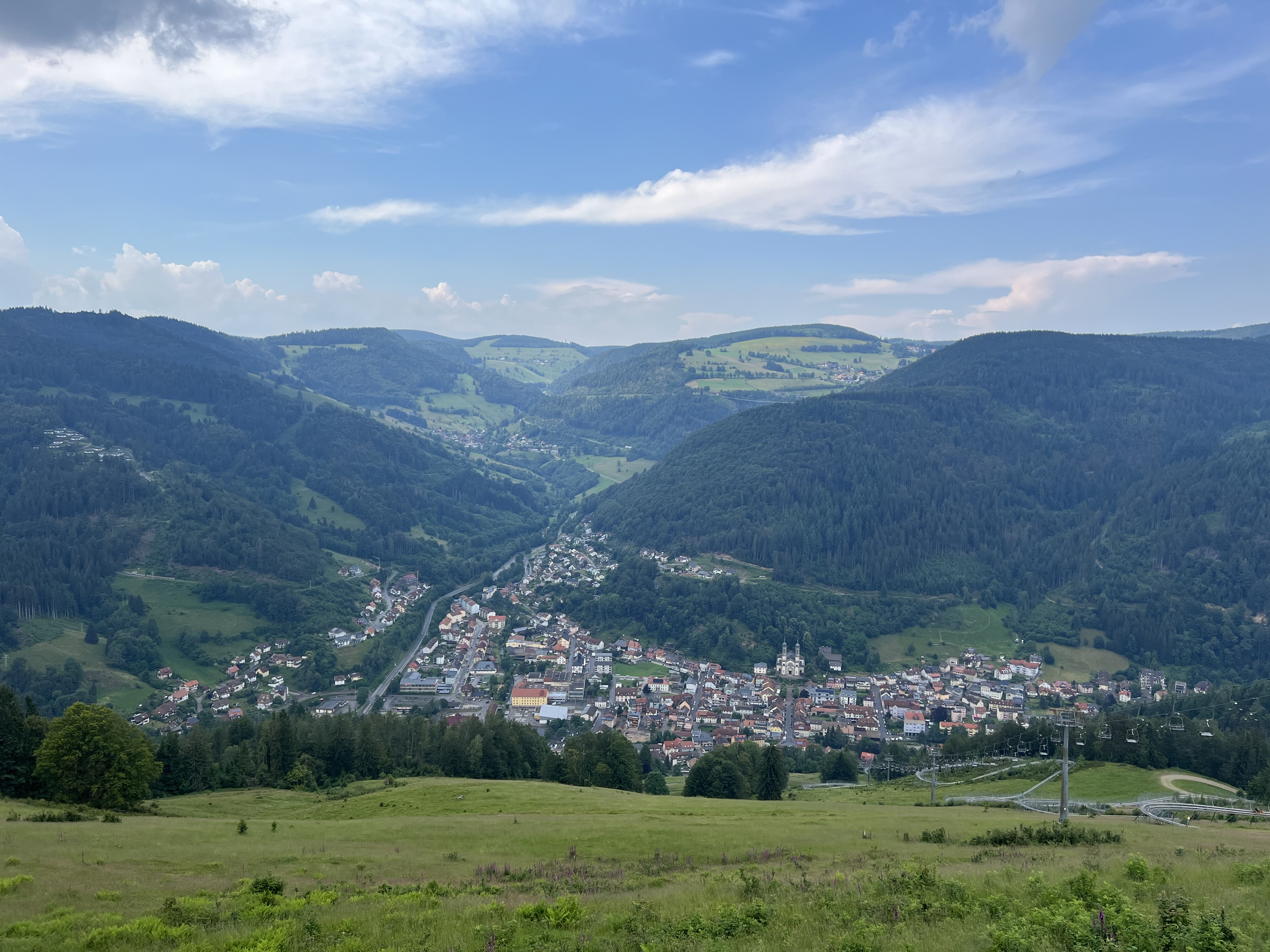 Von diesem Kiosk kann man auf Todtnau und auch den Berghang schauen, an dem sich der Alpine Coaster befindet.