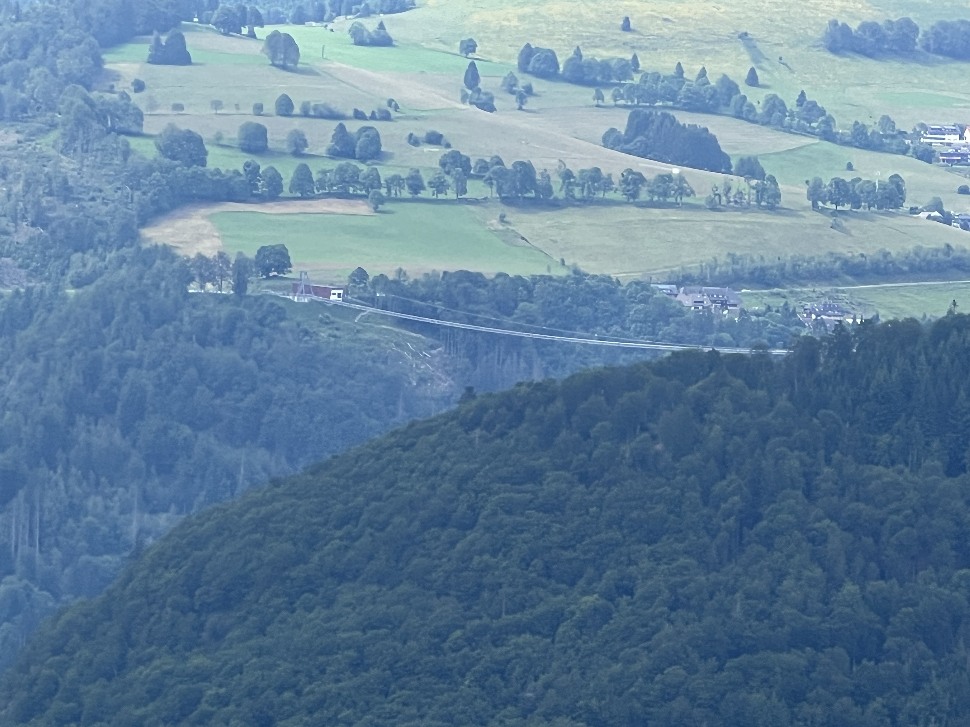 Die blackforstline ist eine Hängebrücke, die 120 Meter über den Wasserfällen von Todtnau ein Tal nahe des Städtchens überquert.