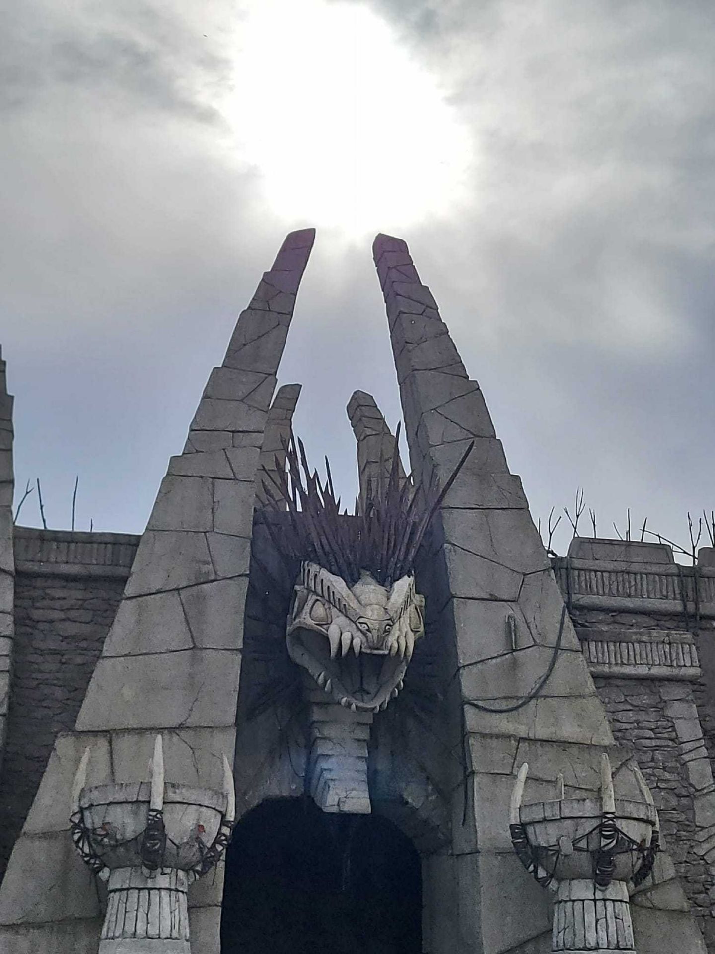 Stattdessen sind wir rasch ins Trockene geflüchtet und den ebenfalls für uns alle eine Neuheit darstellenden Shooting-Darkride Popcorn Revenge gefahren. Dieser wurde 2019 in Gebäudeteilen der ehemaligen Bootsfahrt Le Palais d'Ali Baba eröffnet, welche in dieser Form bereits im Jahr 2000 stillgelegt wurde, aufgrund Bautätigkeiten für den damals nebenan frisch entstehenden Boomerang Cobra. Wenn ich das richtig verstanden habe werden die verbliebenen Gebäudeteile jeweils zu Halloween noch als Maze genutzt; ich kann mich vage erinnern bei meinem Besuch im September 2018 etwas Entsprechendes angeschrieben gesehen zu haben.