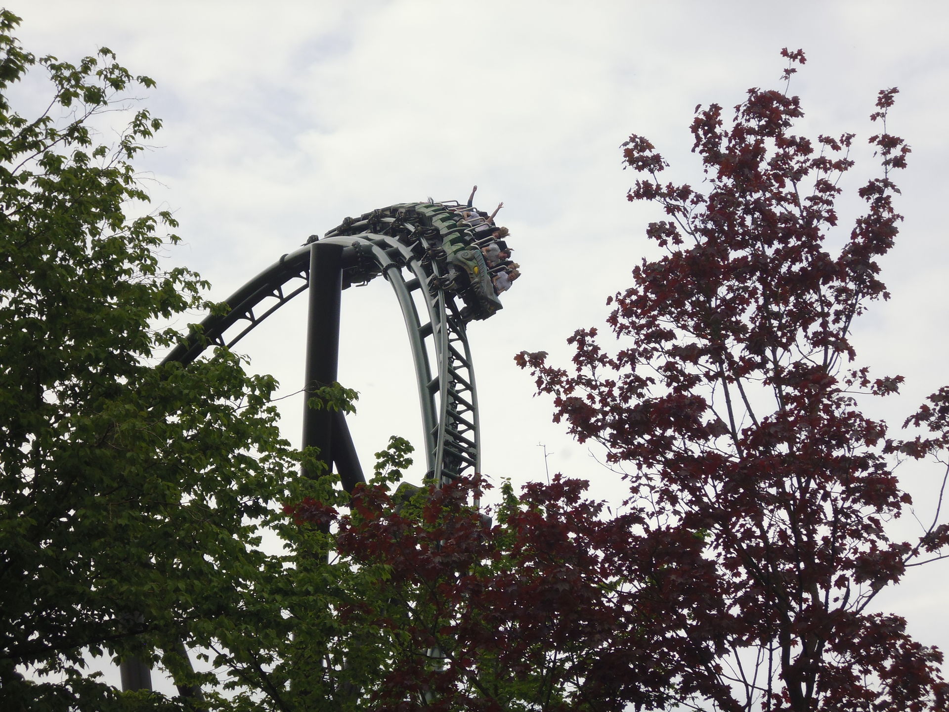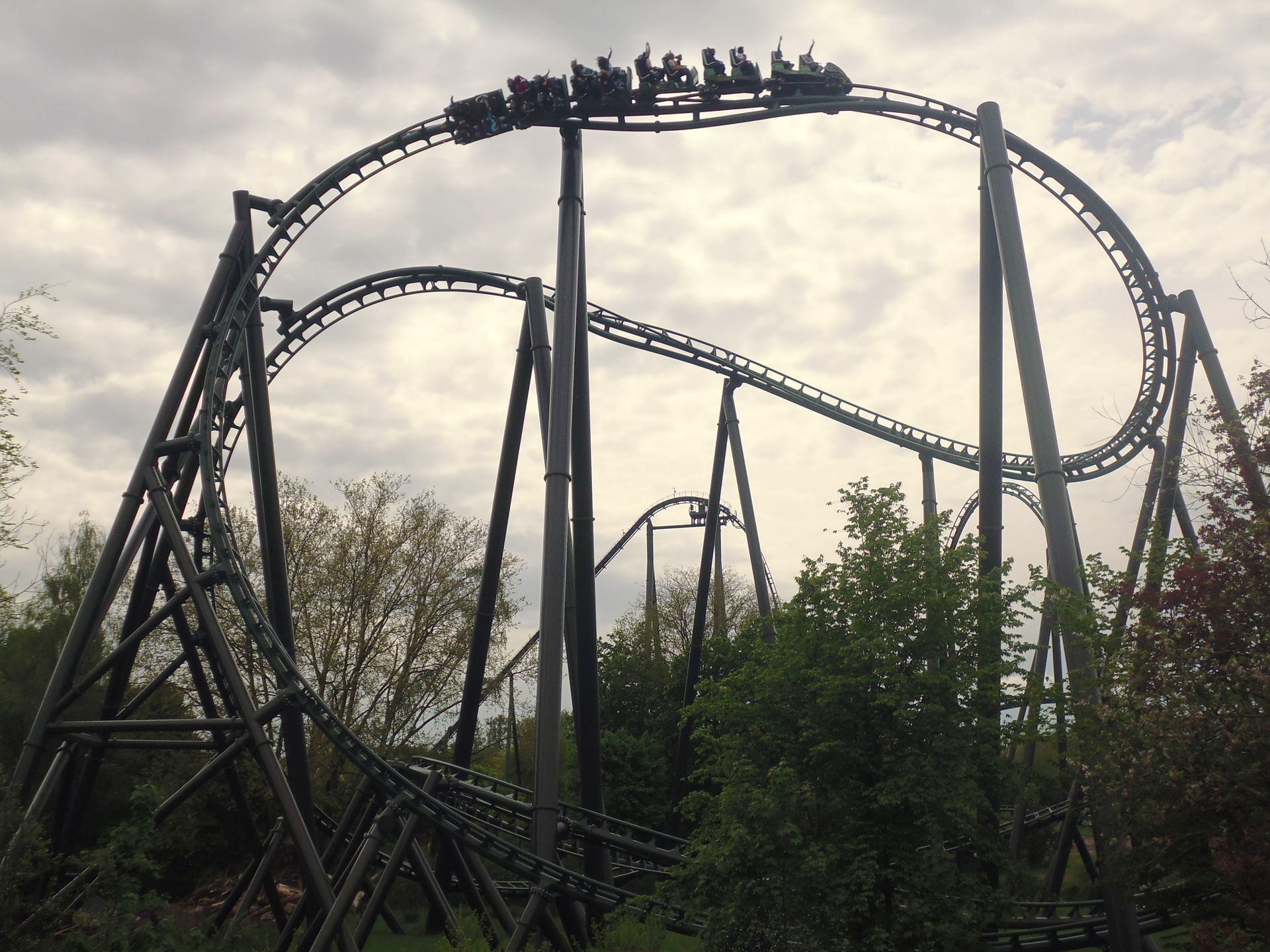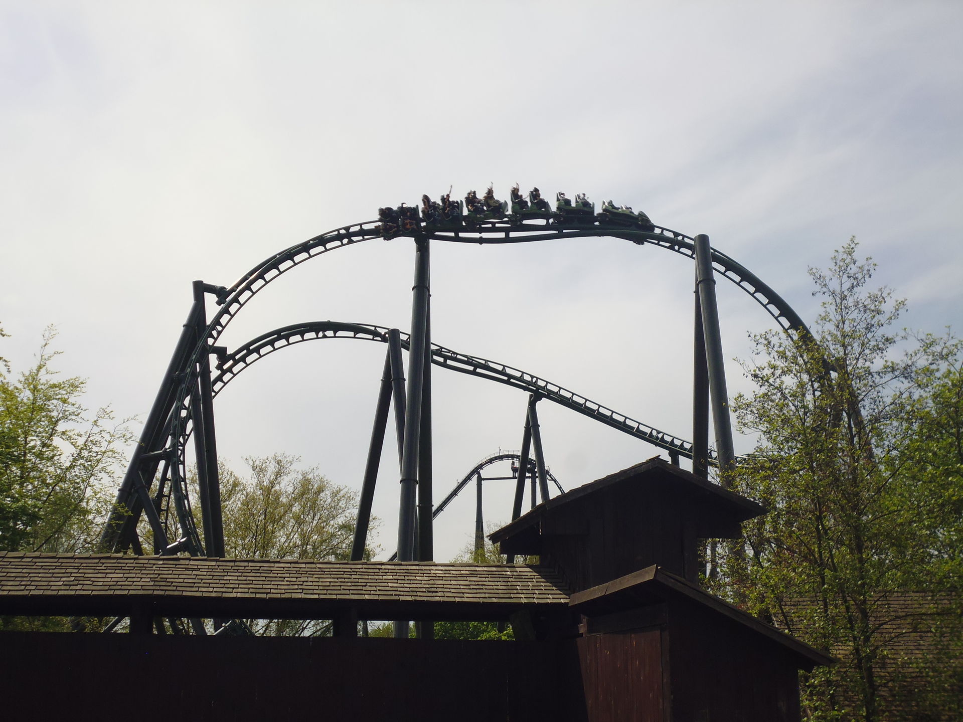 Noch dazu kommt, dass ich die Bahn das letzte mal 2004 und 2006 gefahren bin und ich damals mit meiner Hypotonie zu kämpfen hatte weswegen die 2. Helix mich regelmäßig an den Rand eines Greyouts und teilweise darüber hinaus gebracht hat. Das war dieses mal gar nicht so, aber wir sind sie auch nur bei 20°C Regen morgens um 11 gefahren, da war sie doch etwas zahm. Und vibriert hat sie auch.