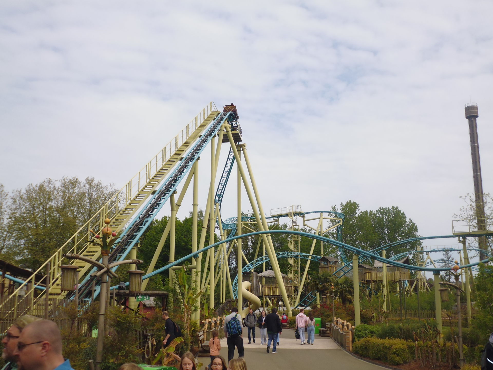 Da die beiden Mitreisenden ihrer Erinnerung nach zuletzt 2008 hier im Park waren - die Turbine war da jedenfalls noch mit Schwungrad-Antrieb fahrbar und auch noch unter diesem Namen bekannt - fehlte ihnen natürlich bislang die halbwegs nebenan gelegene Neuheit von 2018, der Gerstlauer Bobsled Tiki-Waka, weshalb sie sich nach den ersten beiden Kondaa-Fahrten dahin absetzten. Ist ein total lustiges Bähnchen, sans doute, aber ich war nach den Queue-Erlebnissen bei meinem Erstbesuch ehrlich gesagt bedient und wollte meine Zeit und mein Glück derweil lieber in eine andere Schlange investieren.