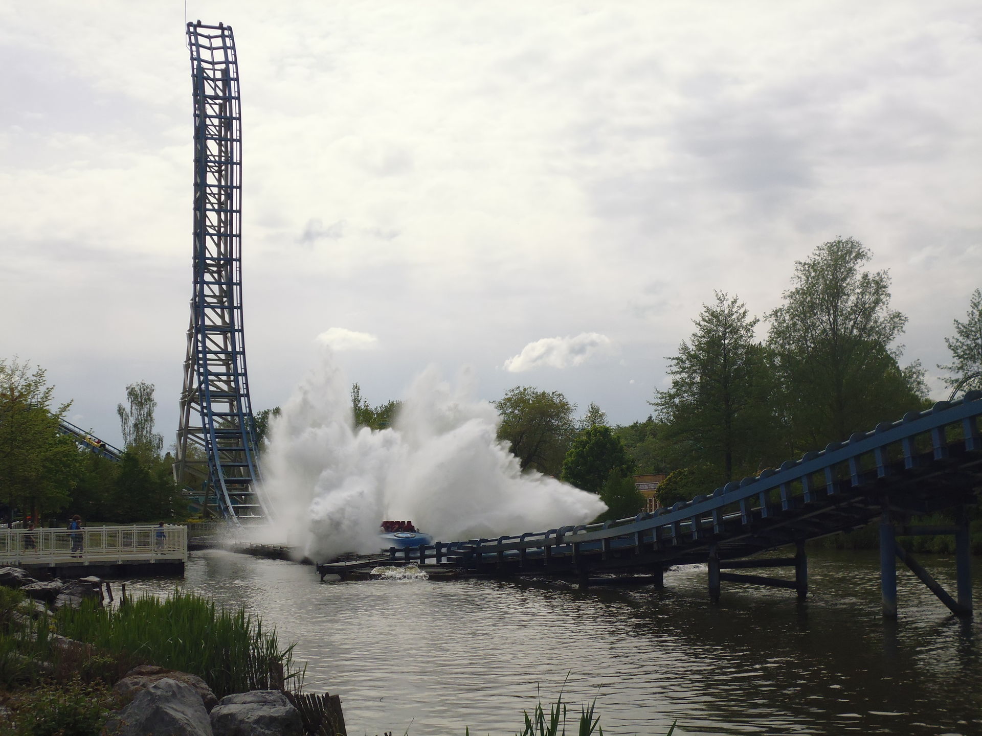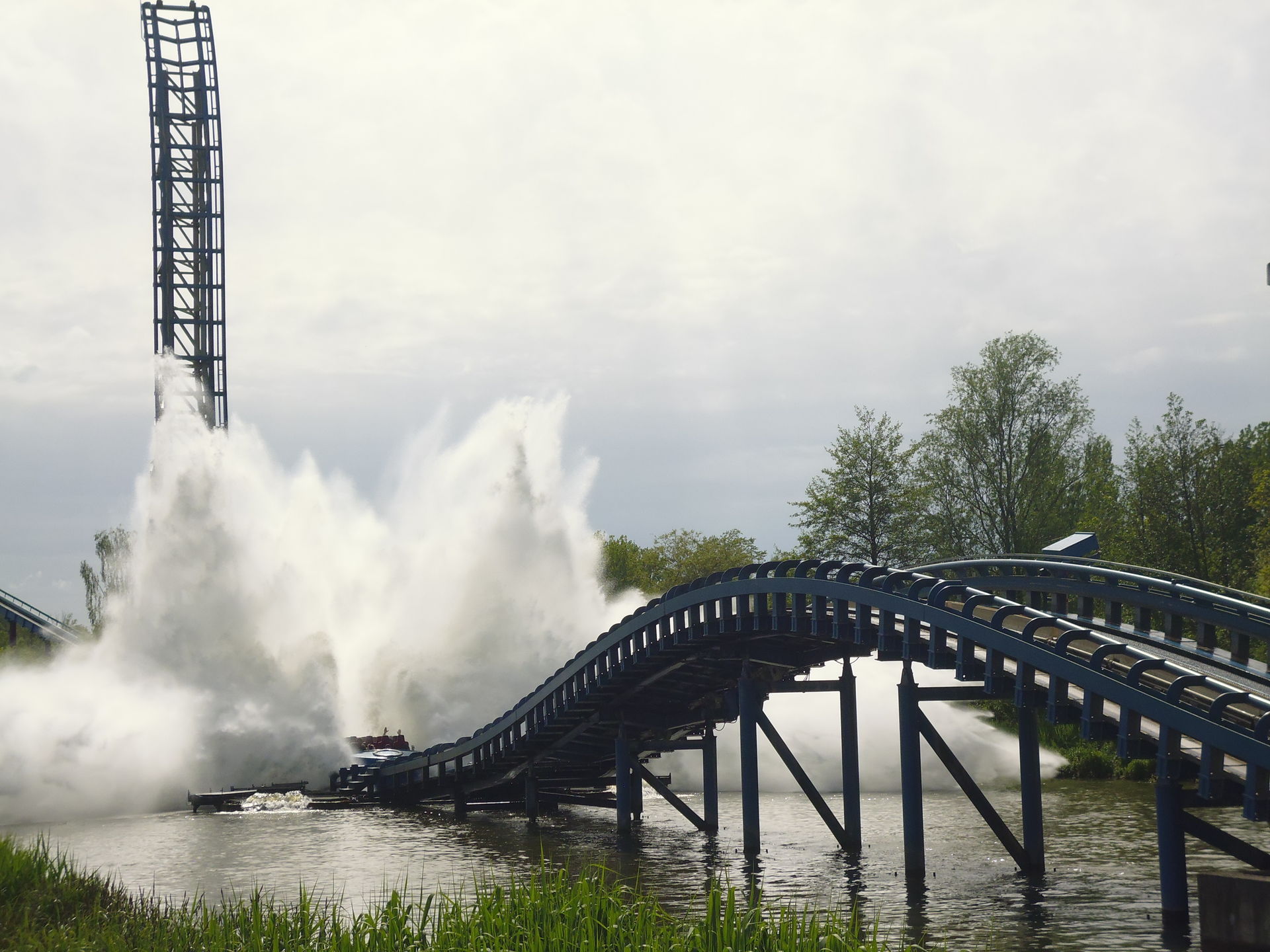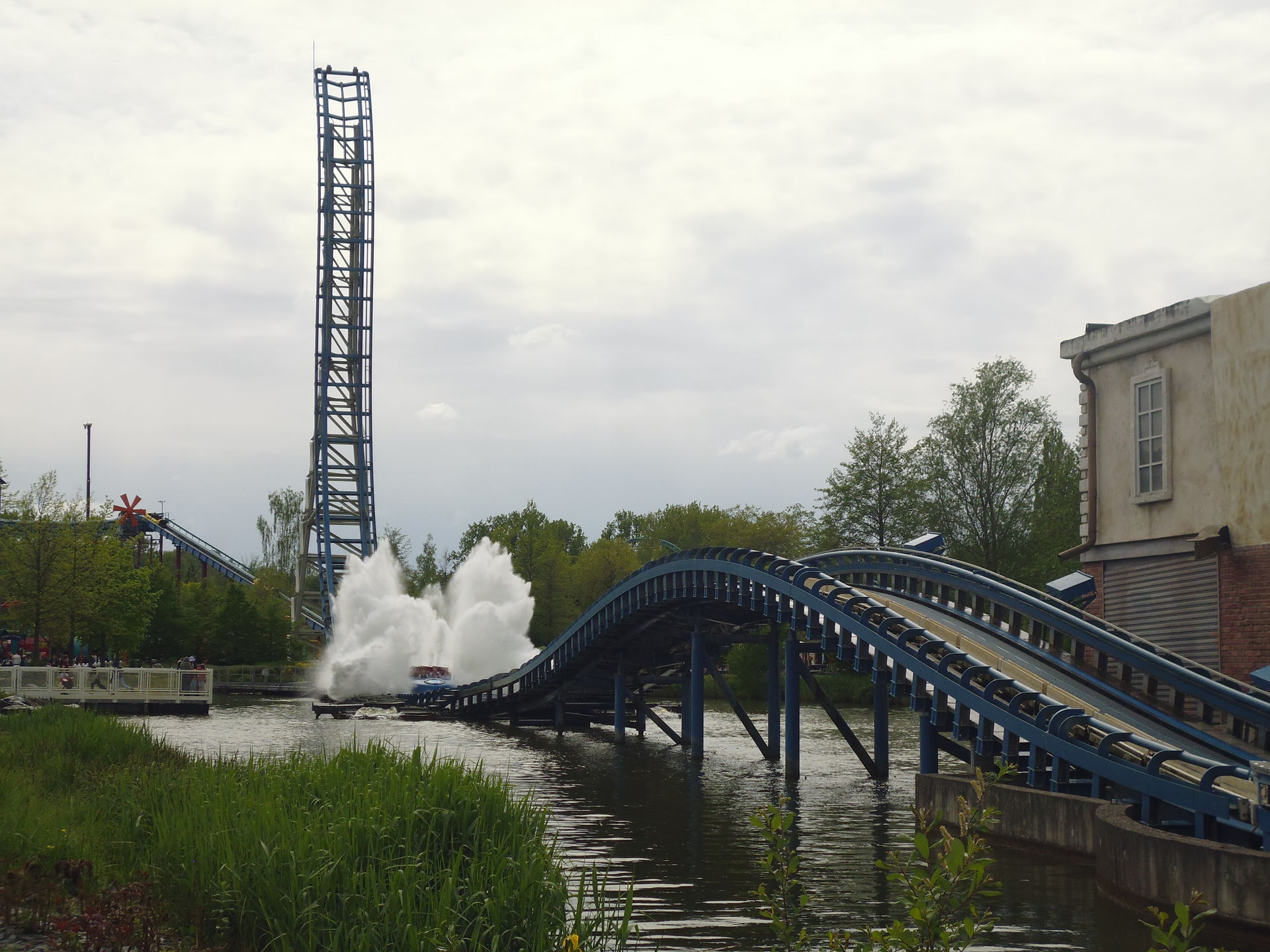 Weiter ging es zum letzten für Anne und Torsten noch neuen Zähler im Park, dem Mack Power Splash Pulsar. Mit einem kritischen Blick auf das Seewasser hab ich hier aber lieber ausgesetzt und wollte mich in der Zeit anderweitig beschäftigen. Würde zum Glück nicht allzu lange dauern, denn anders als bei den am Morgen beobachteten Fahrten war inzwischen noch das zweite Boot auf die Pendelstrecke geholt worden, so dass das wie ich finde beste Feature der Bahn, der Drehteller, seine volle Wirkung entfalten konnte.