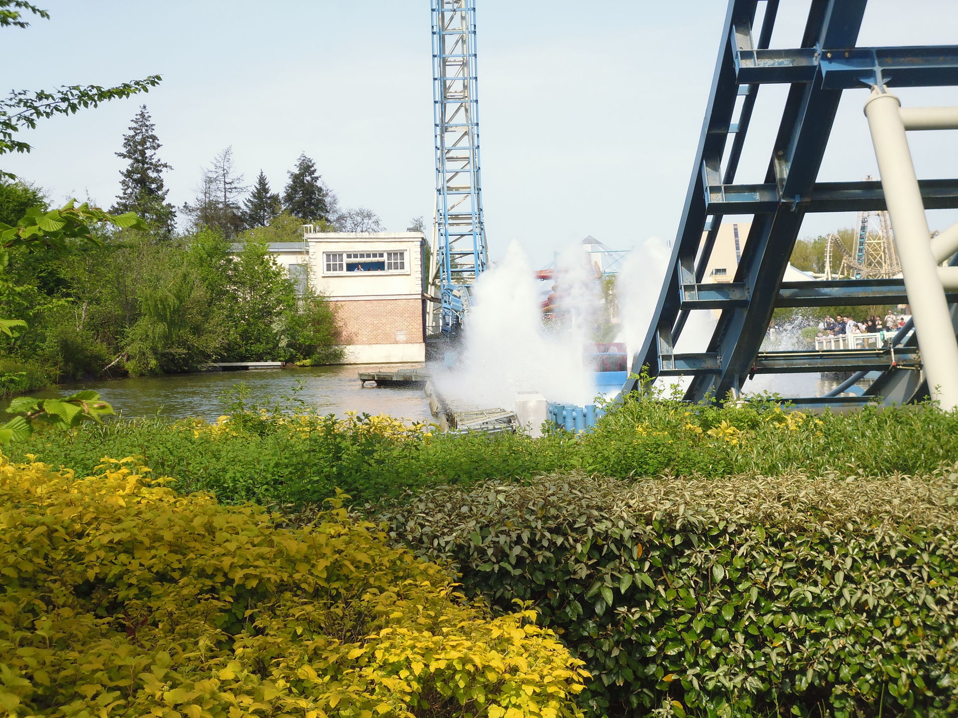 Hier sieht man ansatzweise noch den aus zwei Hochstoss-Rohren à la Sheikra emporschiessenden «Nachzug-Splash», der merkwürdigerweise erst sichtbar wird, wenn die Haupt-Gischt jeweils schon wieder am Abregnen ist. Solche Zusatzgimmicks erkennt man halt auch erst mit genügend Zeit.