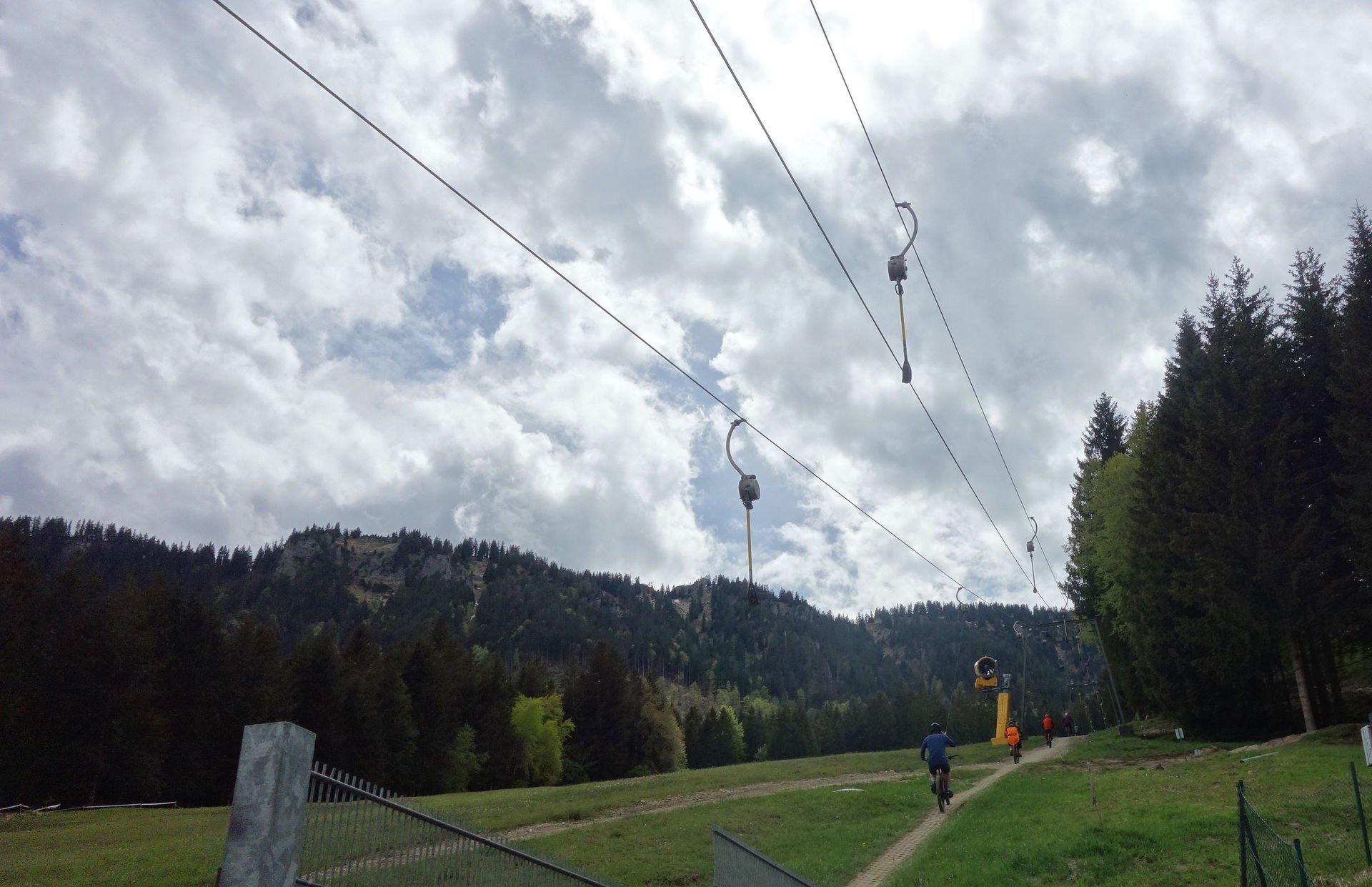 Über eine Viertelstunde dauerte die Fahrt mit der Sesselbahn - nicht nur wegen gelegentlicher Stopps. Zunächst durch den dichten Wald.