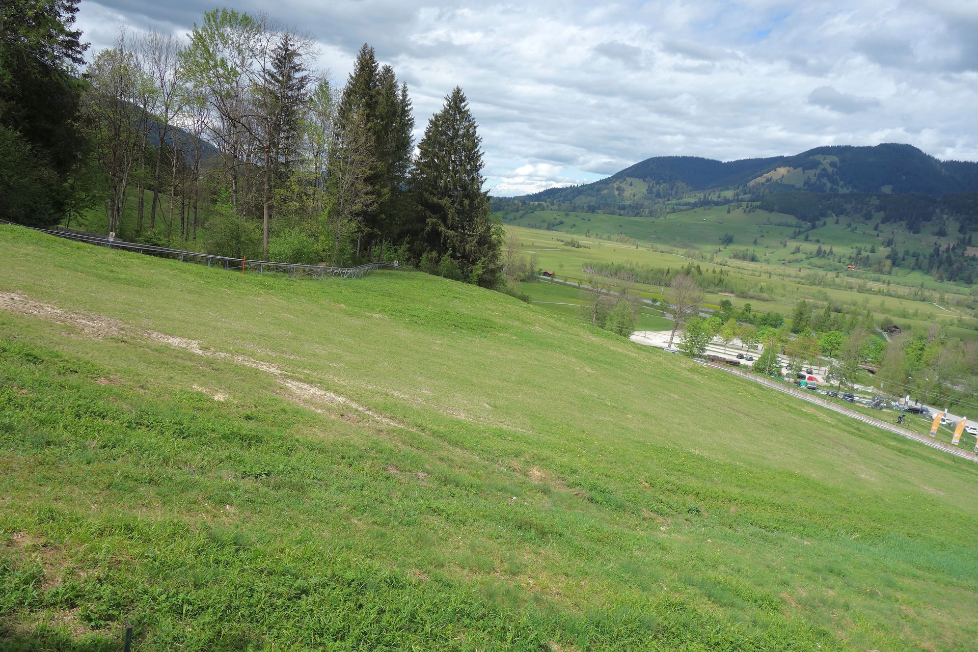 Schließlich folgt eine weitere Slalom-Passage am Waldrand neben einer der Skipisten in Richtung der Sesselbahn.