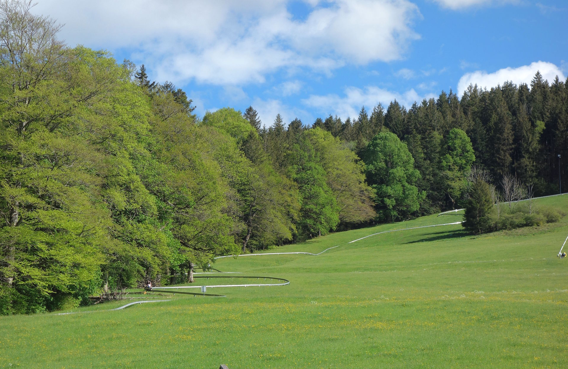 Brandauer-typisch mit der ständigen Angst, in einer der abrupten Kurven aus dem Sitz geschleudert zu werden. Idealerweise natürlich dort, wo man mal zwischen den Bäumen durchrauscht. Also wenn man nicht wie wir von einem oeden Bremser daran gehindert wird. Wir hatten uns meine ich beim Einstieg schon etwas Zeit gelassen, aber das reichte leider nicht. Schon nach wenigen Kurven mussten wir verlangsamen. Glücklicherweise nehmen die Brandauer-Schlitten hier sehr schnell wieder Tempo auf, sodass wir nach kurzem Stopp zum Abstands-Aufbau wieder ein paar Meter Gas geben konnten. Die Bahn hätte ohne dieses Stop&Go jedenfalls viel Spaß machen können...