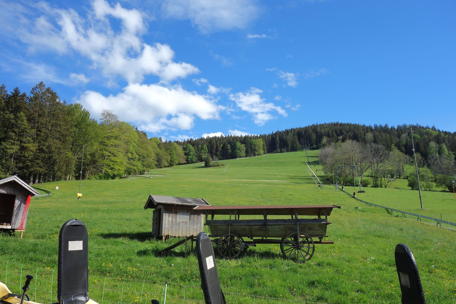 Von Oberammergau ging es wie erwähnt gleich weiter zum Tegernsee. Genauer gesagt zum Skigebiet am Oedberg. Ursprünglich war dieser für den Montag eingeplant gewesen, ebenso wie der Blomberg, den wir unterwegs ohne Stopp passierten. Relativ kurz vor der Tour musste ich bei einer Kontrolle der Öffnungszeiten allerdings feststellen, dass man Montag und Dienstag zum Ruhetag erklärt hatte. Damit da nicht so ein einzelner roter Punkt übrig bleiben würde, wurde der Besuch eben mit entsprechendem Umweg auf den Sonntag vorgezogen. Die nahe Schliersbergalm mit ihrer berüchtigten Sommerrodelbahn und dem eigenwilligen Alpenroller hatte ich leider nicht auf dem Schirm, da der Count schon seit vergangenem Jahr SBNO ist und somit nicht auf der CC-Karte stand. Hoffentlich ändert sich das nochmal, aber allein für die Rodelbahn hätten wir da eigentlich schon vorbeischauen müssen.
