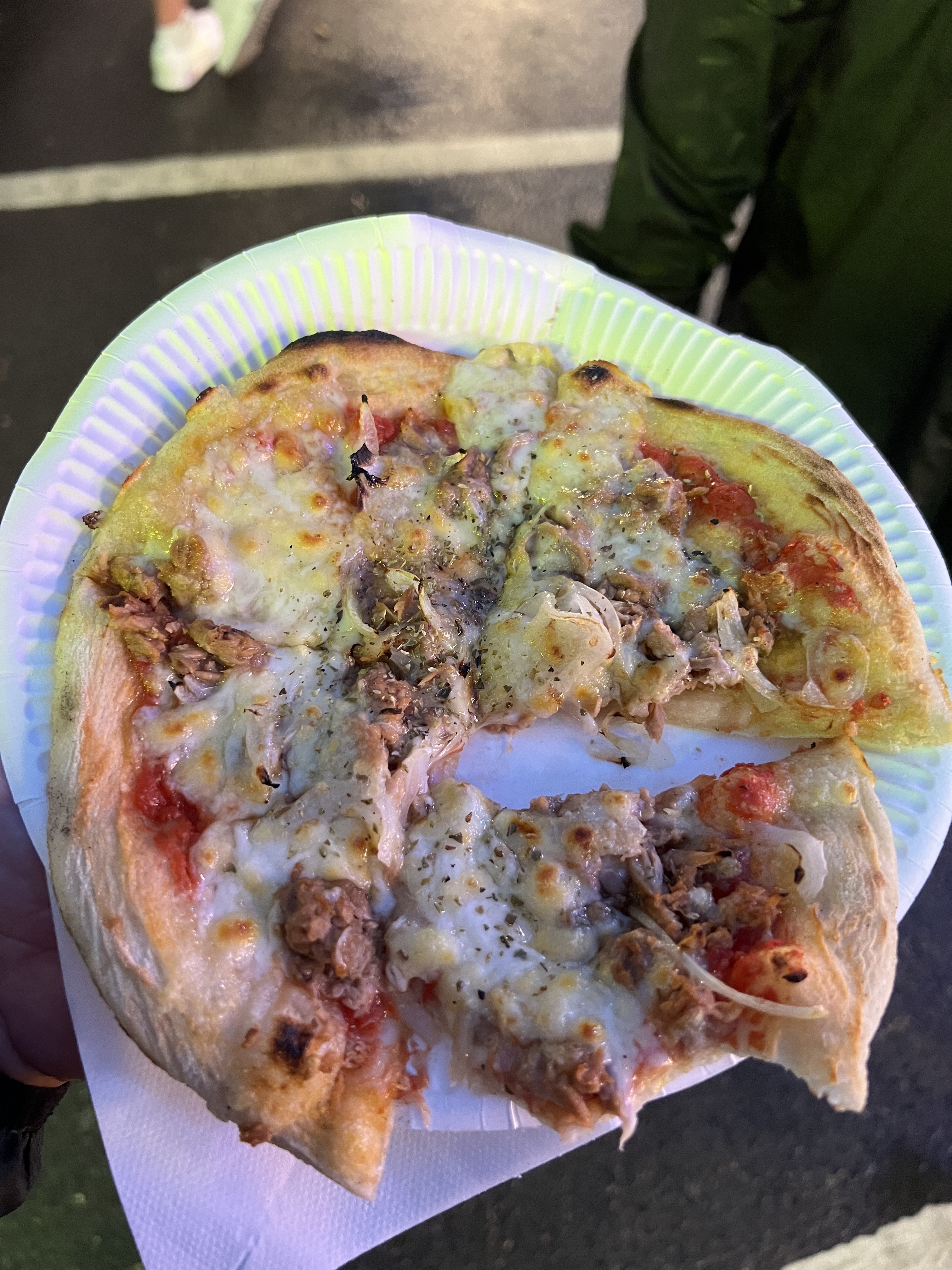 Dann datt erste Leckerchen, die erste Pizza, der erste Merch und die erste Runde. Dann noch Robert am Telefon: “Seid ihr noch da - Ich komm auch noch eben rum”