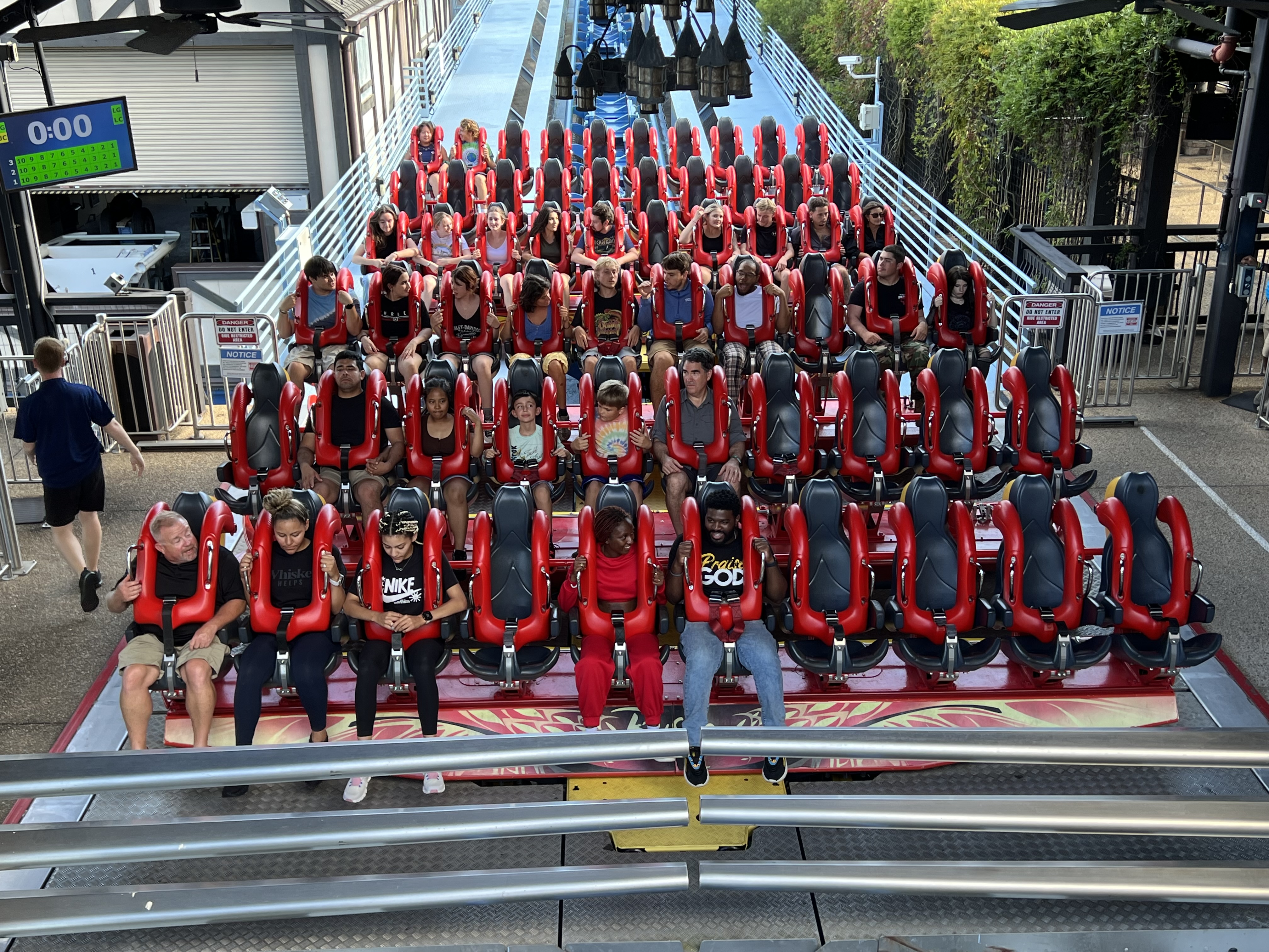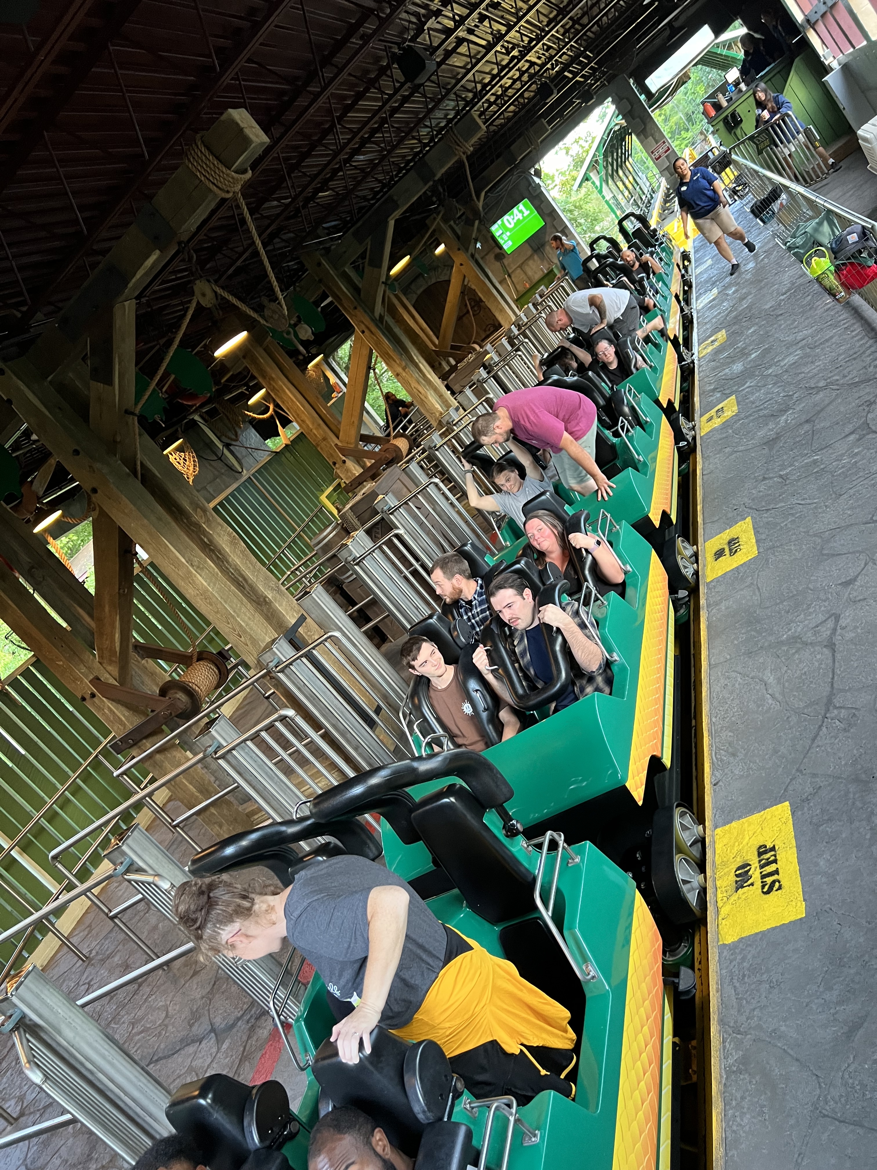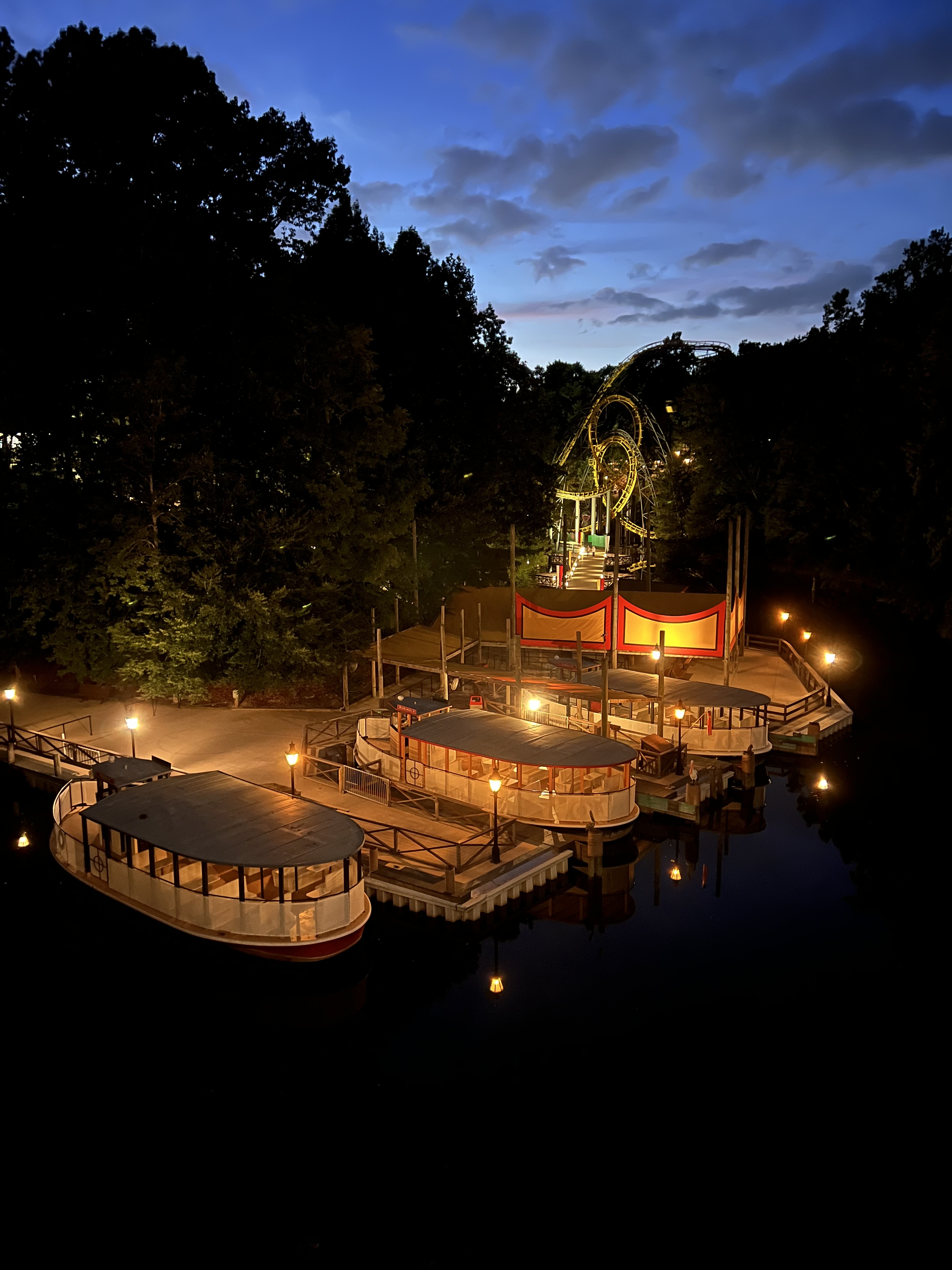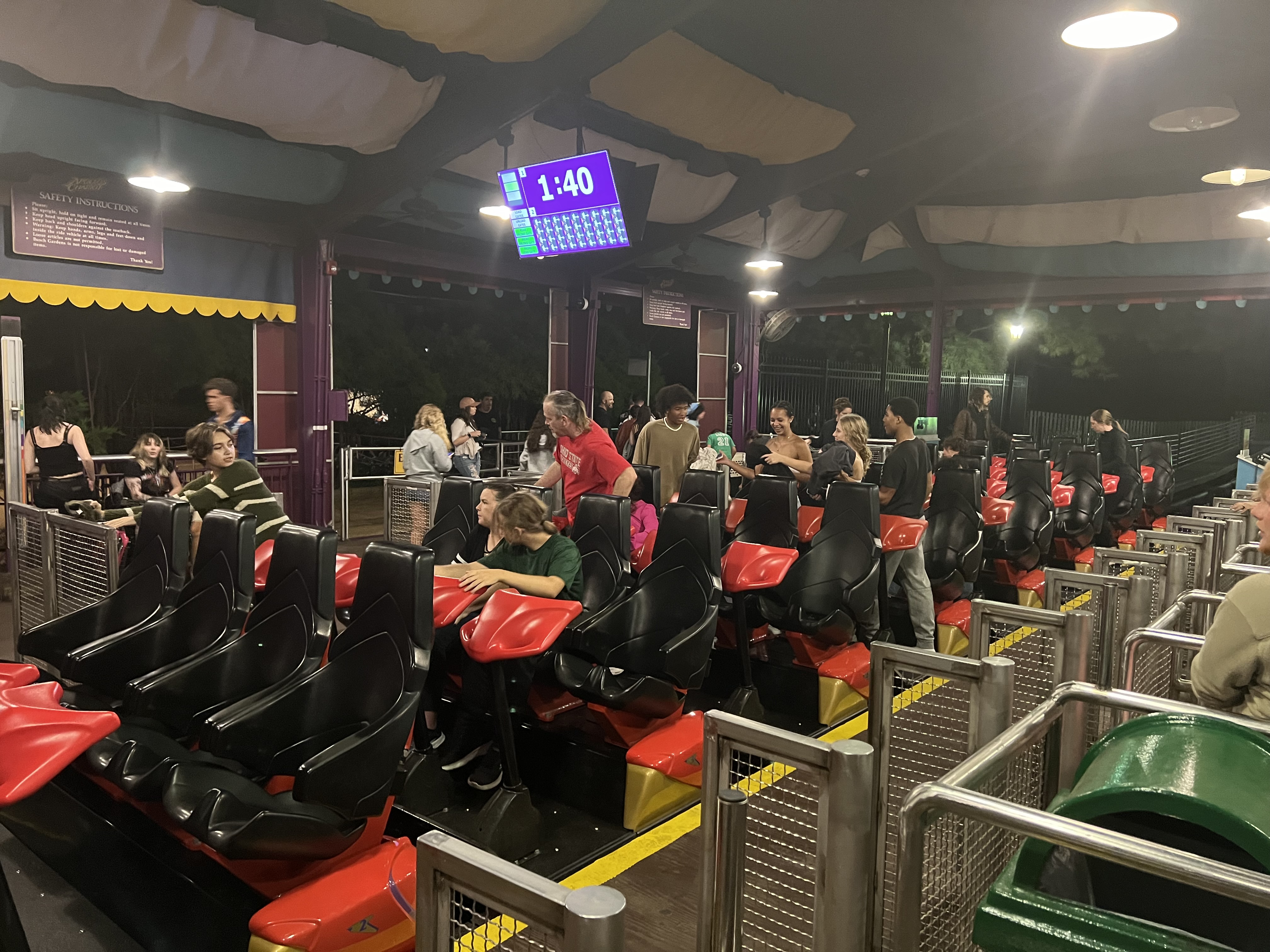 Nach zwei Fahrten Pantheon (Frontrow und Backrow) im Dunkeln ging es dann zum Tagesabschluss noch mal so Richtung in die Dunkelheit: Und zwar zu Wiederholungsfahrten auf Apollo's Chariot. Das ist ein krönender Abschluss gewesen. Man fährt komplett im Dunkeln, da die Strecke ausserhalb an der Peripherie des Parks entlangführt und verzichtet auf Beleuchtung der Strecke wie man es bei Pantheon tut. Ob Front oder Back Row: Beides bereitet uns Fahrt für Fahrt einen Heidenspaß.