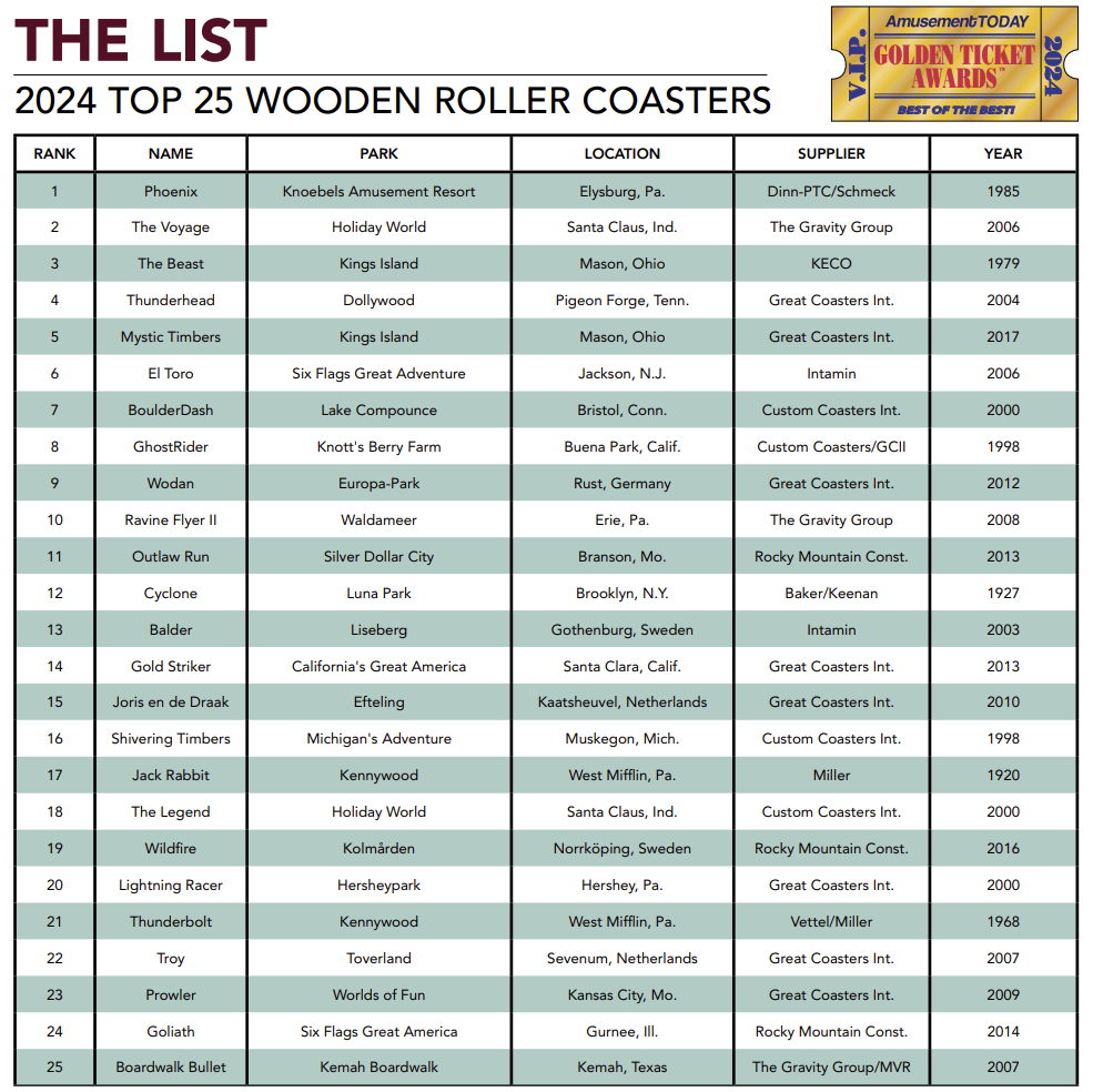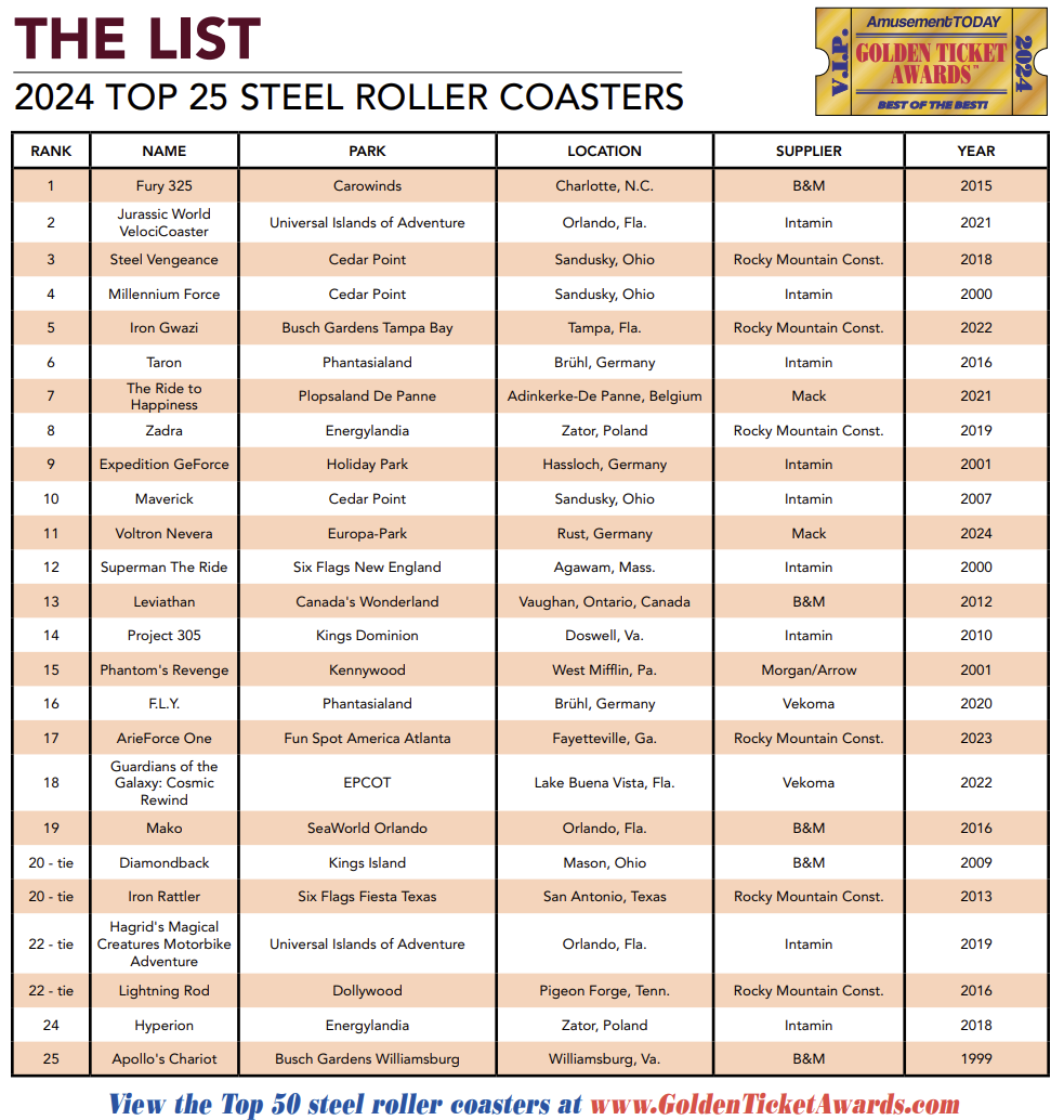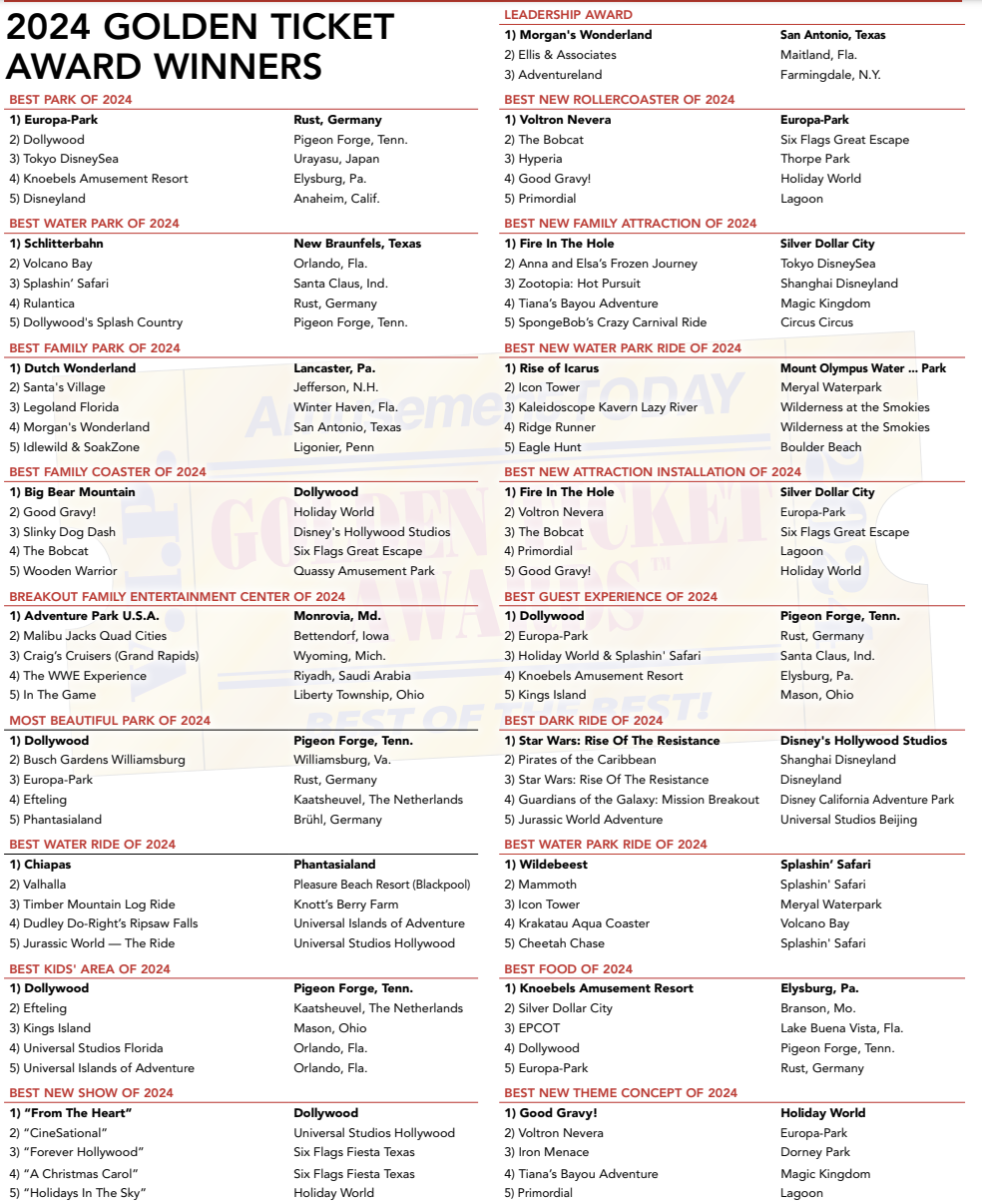 Die Gewinner der Golden Ticket Awards 2024 sind bekannt gegeben worden. Der Europa Park hat sich in diesem Jahr wieder den Award für den besten Park geholt und zudem den Award für die beste neuste Achterbahn (meiner Meinung nach nicht wirklich überraschend).