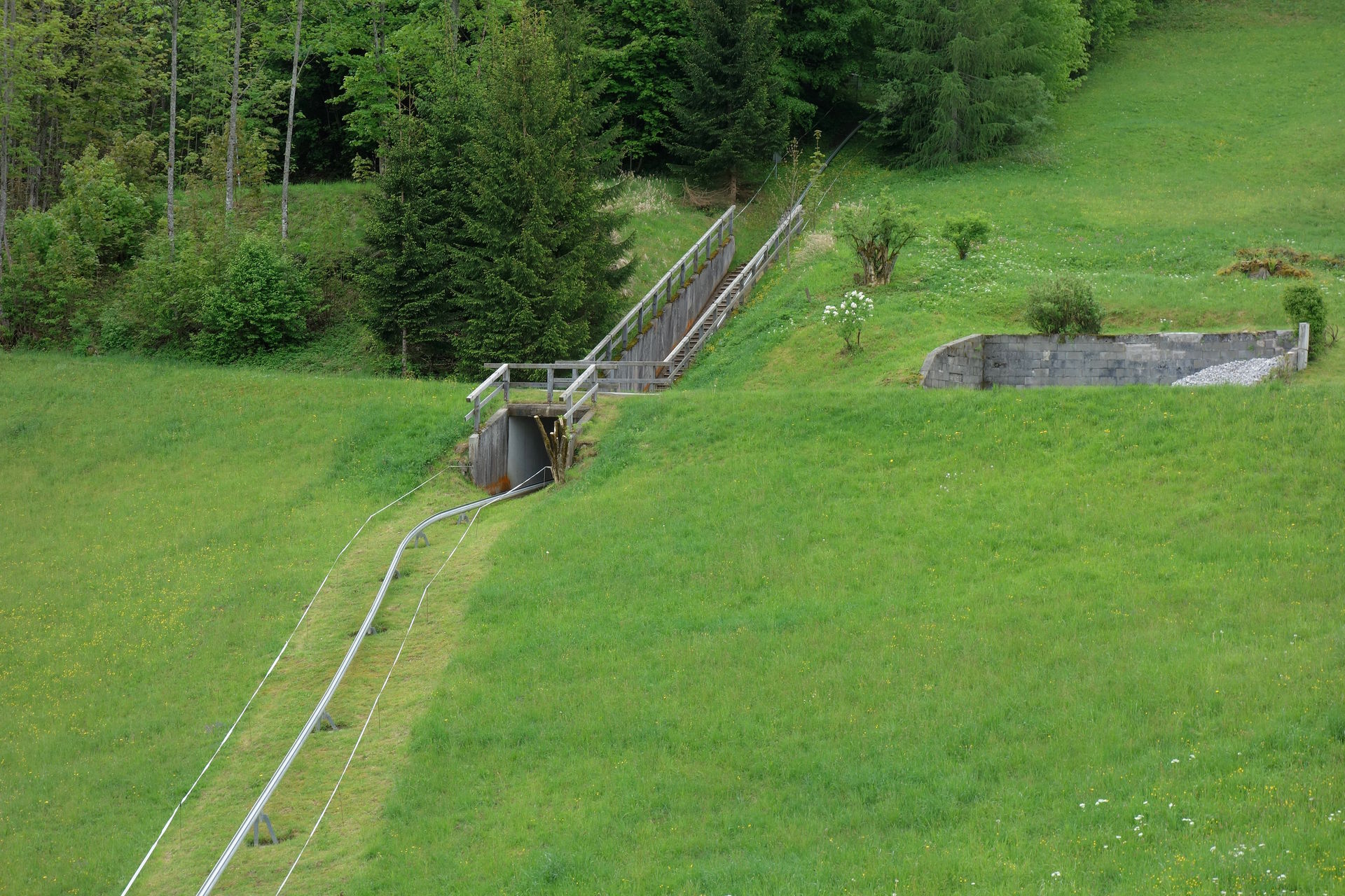 Nach einem letzten Steilstück samt Unterführung rollt man schließlich auf der grünen Wiese im Tal aus.
