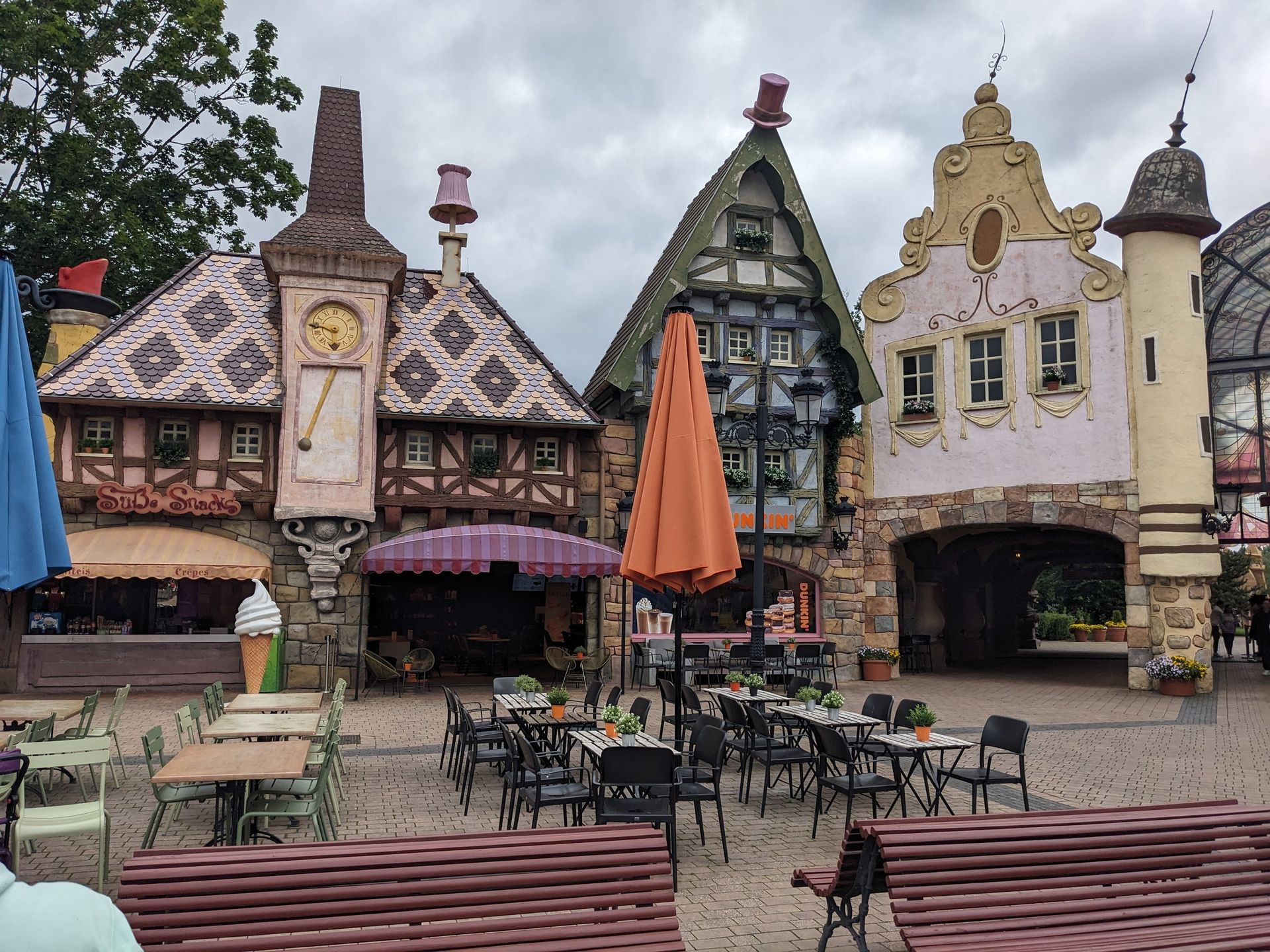 Hier noch einmal der recht neue Dunkin mit Außenbestuhlung auf dem Platz der Fontainen: