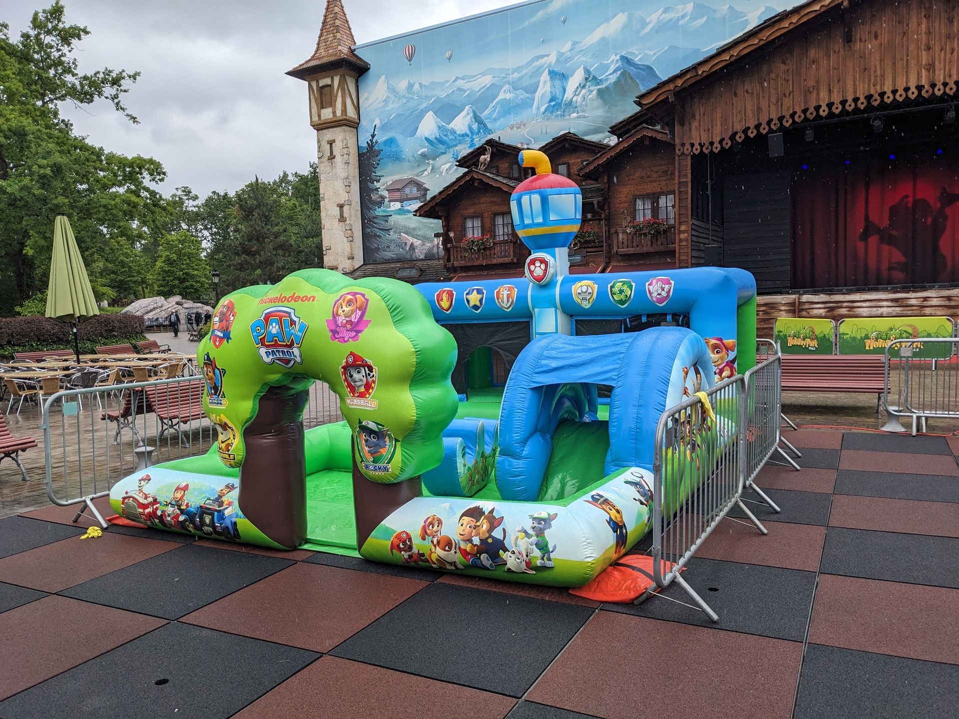 Statt der Fontainen waren dort zu den Paw Patrol Tagen drei Hüpfburgen aufgestellt: