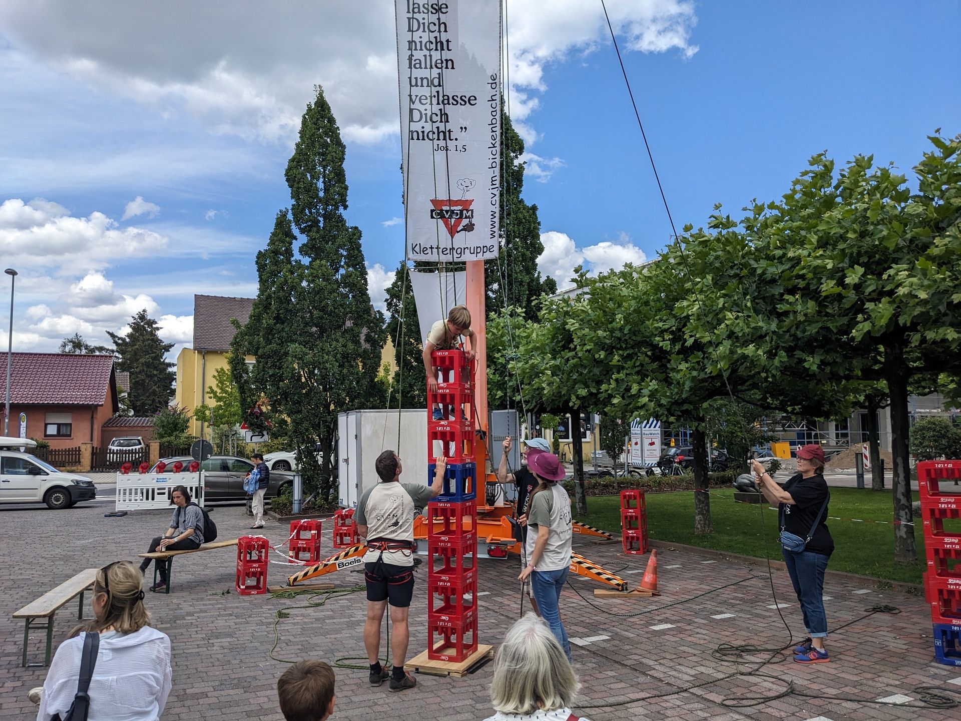 Von Damrstadt aus ging es wieter nach Bickenbach, wo wir unseren Kletterfelsen wieder abholen mussten. Dort wurde nämlich 1150 Jahre Bickenbach mit einem anderthalbtägigen Fest gefeiert.