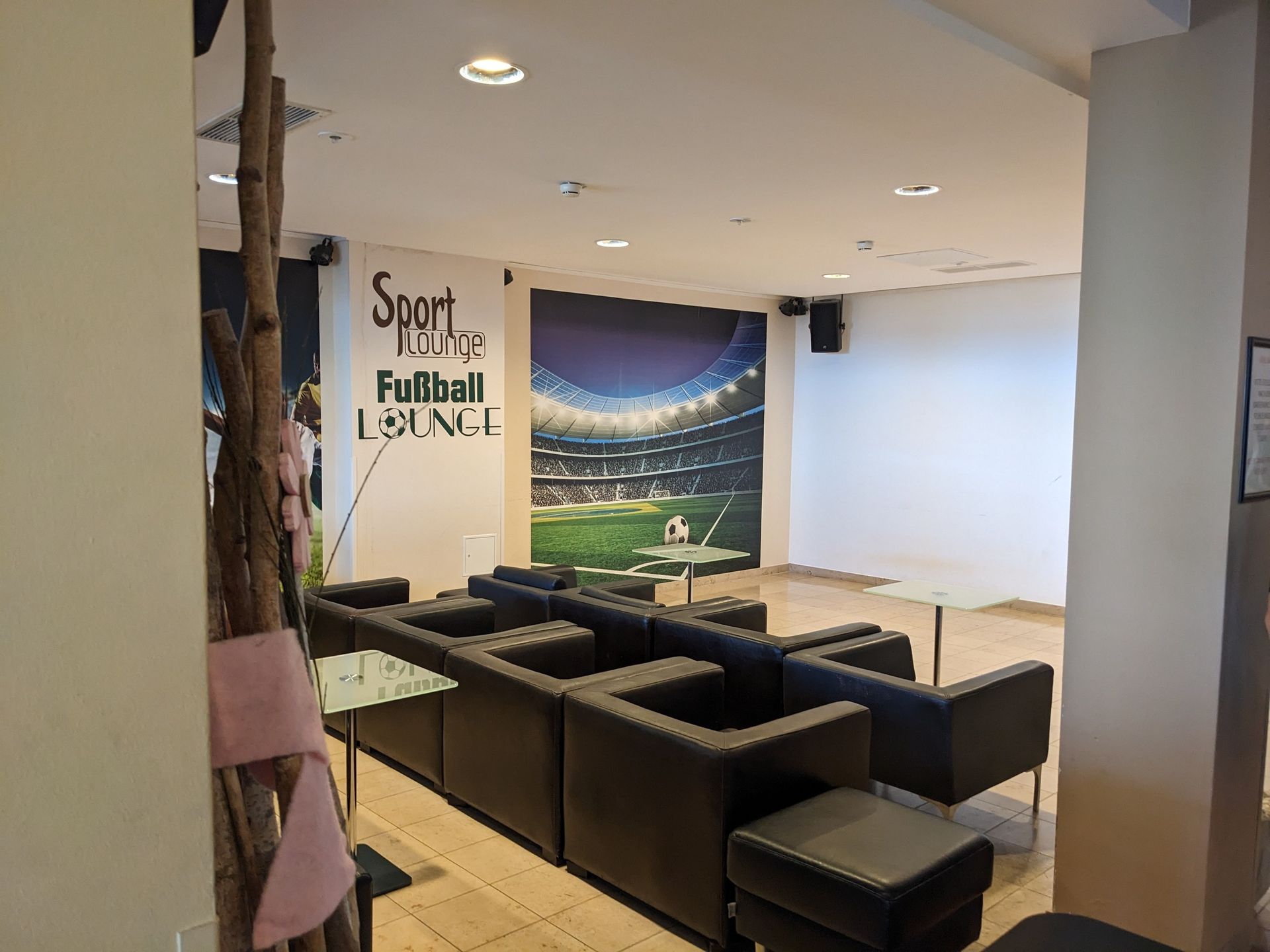 Hinter der Wand rechts verbirgt sich noch eine alte Kegelbahn aus der Bauzeit des Hotels, die aber nur noch als Abstellraum genutzt wird. Ersatz gibt es jetzt in einem separaten Gebäude.