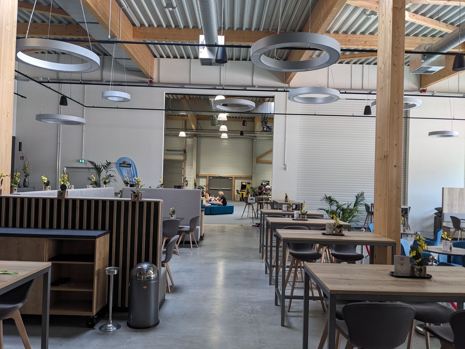 Das Restaurant ist hinten über die großen Rolltore mit einer weiteren Halle verbunden: