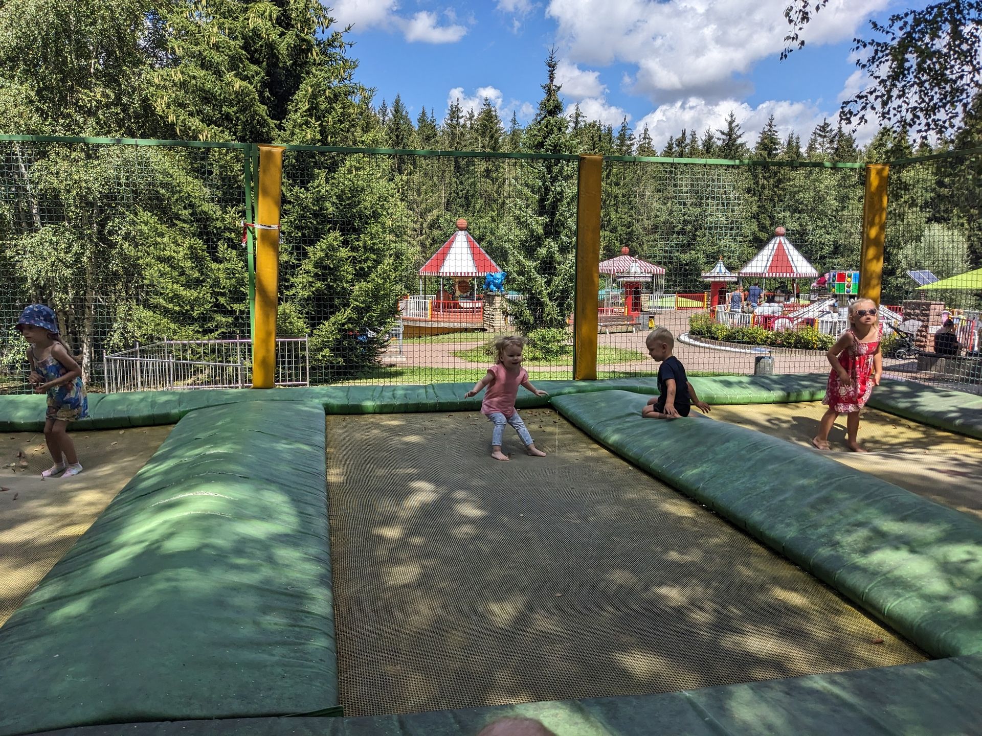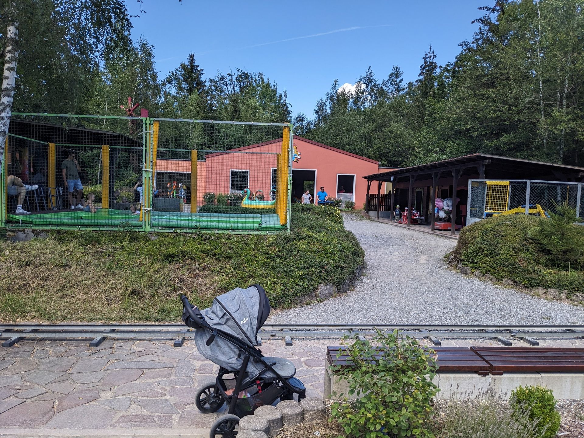 Etwas kurios ist, dass dieser Bereich nur über den Bahnhofsbereich des Zuges hinüber zugänglich ist. Ein weiteres Trampolin gibt es hier auch: