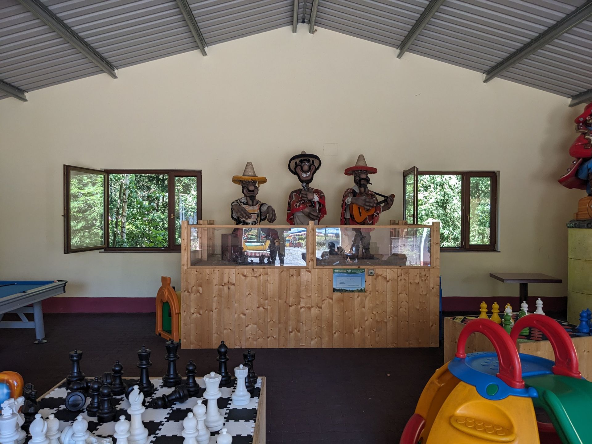 Ich vermute einfach mal, dass bei schlechtem Wetter die Besucherzahl des Parks äußerst gering sein dürfte. Trotzdem gibt es hier auch einen überdachten Bereich mit Elektronik-Band und diversen Spielen: