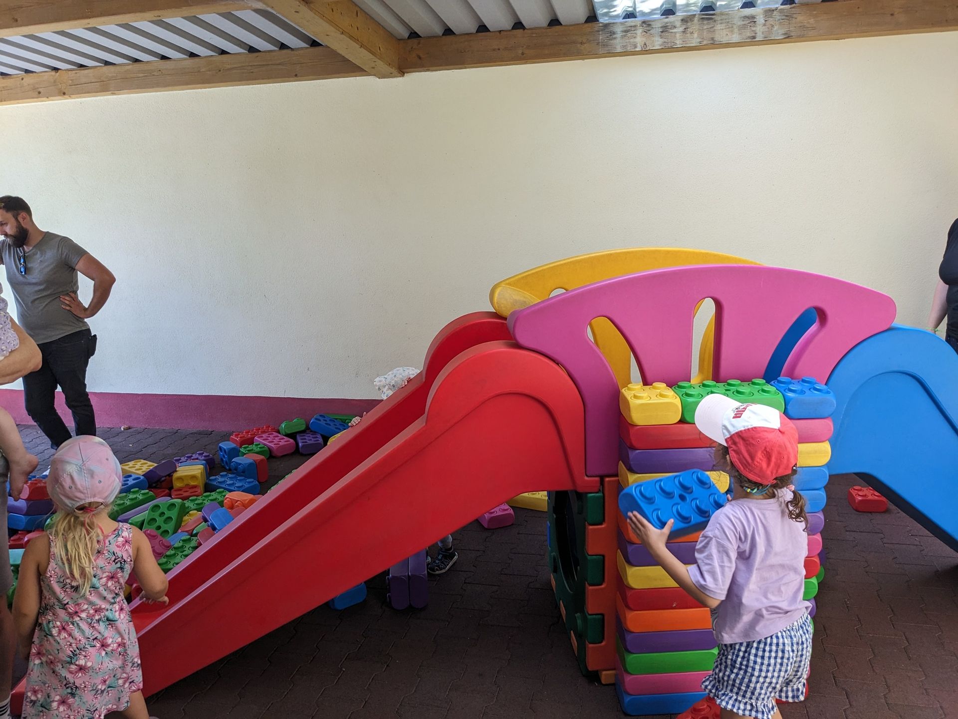 Und einen Spielbereich mit kleiner Rutsche gibt es auch: