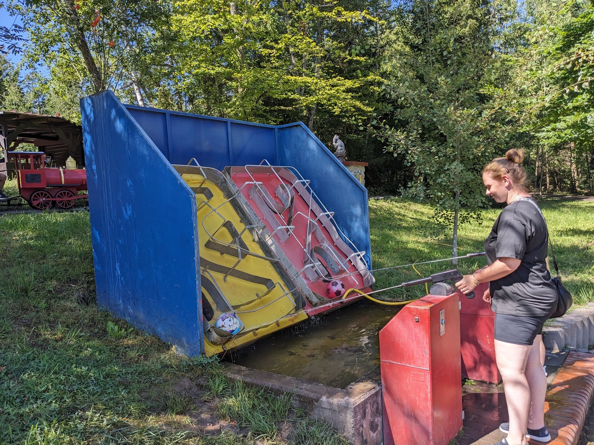 Dann folgt jetzt noch der "Indoorbereich" in der Parkmitte, der von der kleinen Parkeisenbahn (inkl. Lokführer!) umrundet wird: