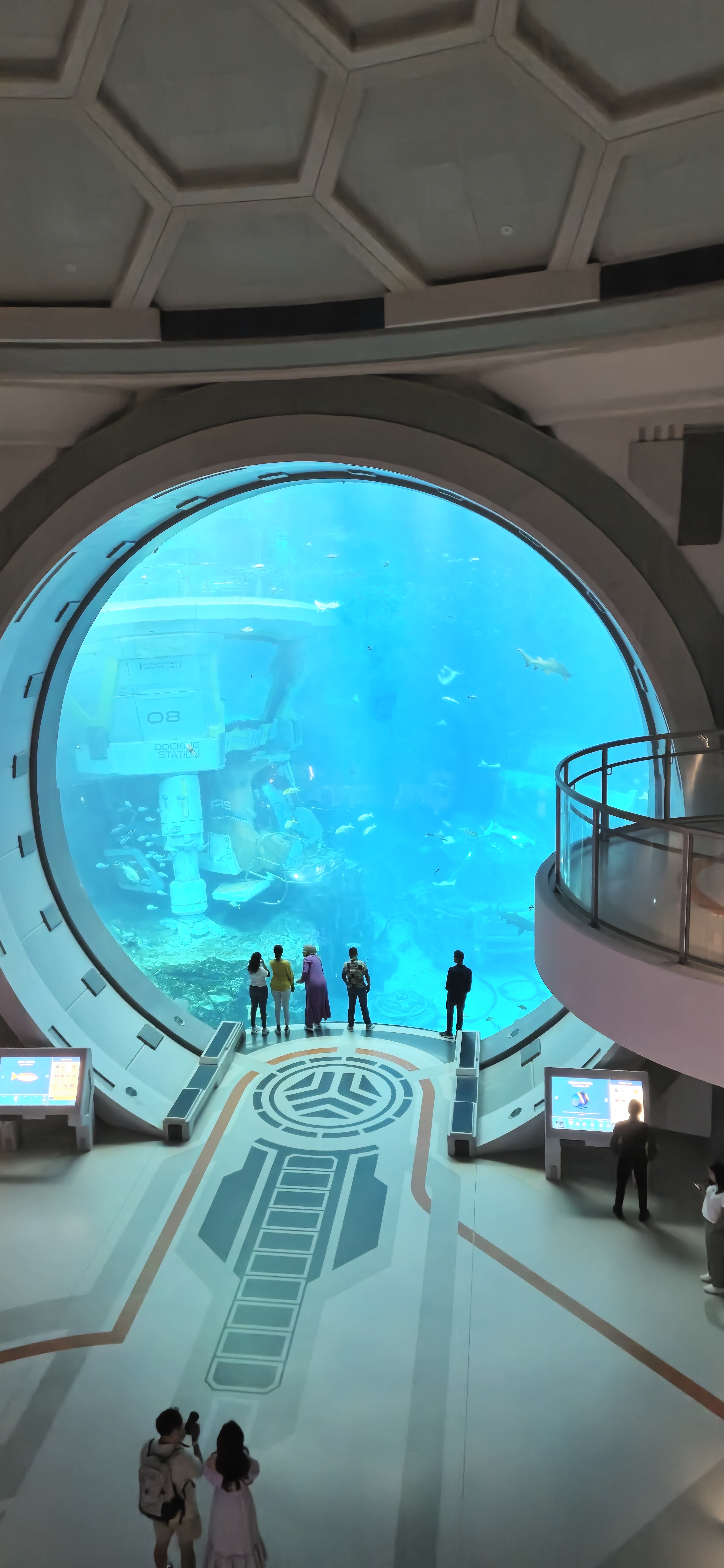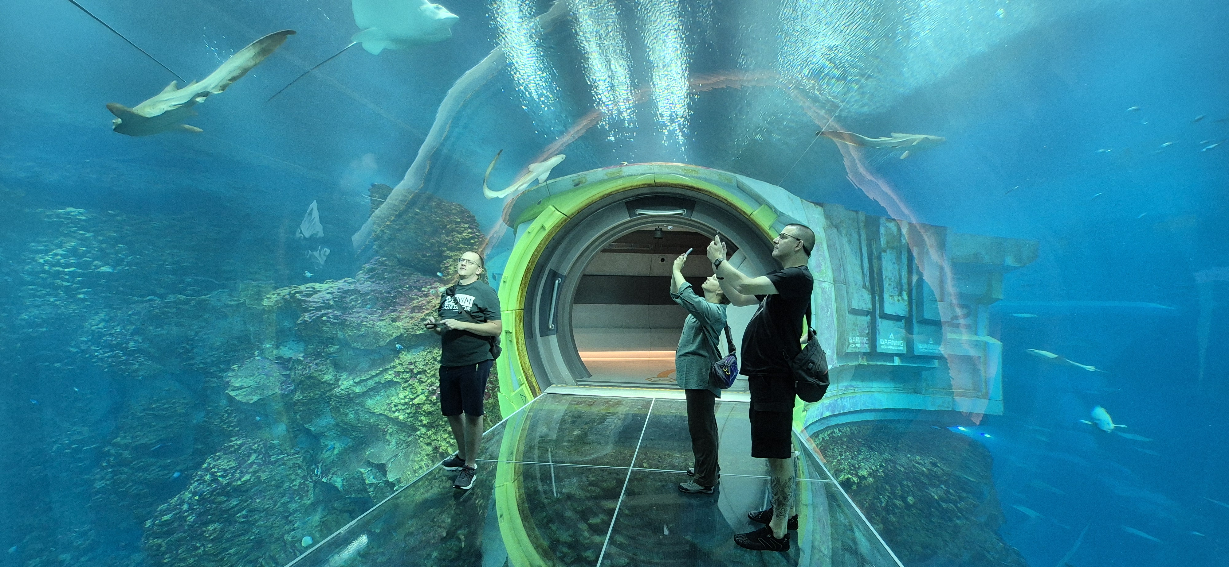 Beeindruckend sind die vielen riesigen Aquarien (oder ist es nur eins mit vielen Scheiben?)