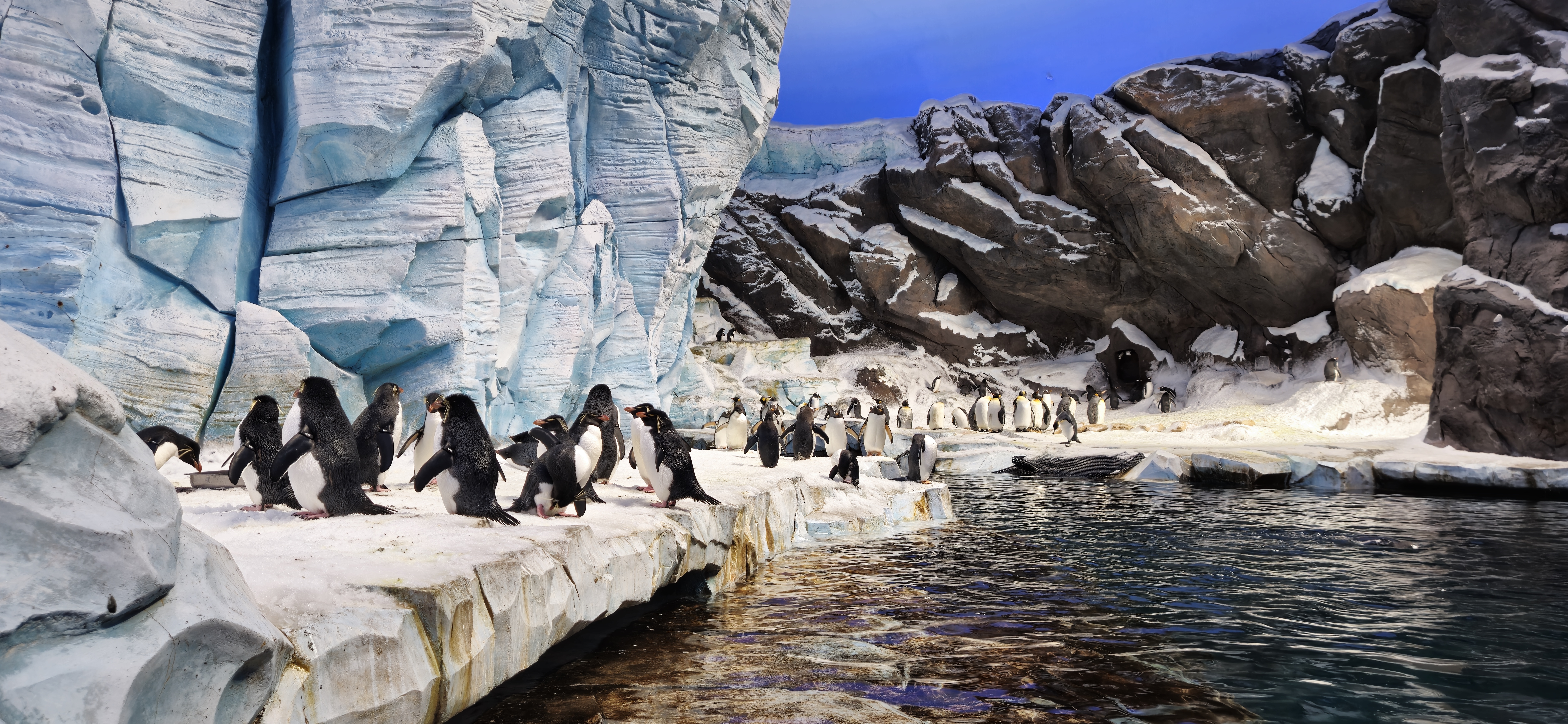 Aus dem "Arctic Ocean" geht es direkt über den "Polar Ocean" und die "Antarctica". Hier ist es kalt, in kurzer Kleidung verweilt man, vor allem in der Arktis nicht sehr lange. Der Grund für die Kälte ist das echte Eis und der echte Schnee, schließlich mögen es die hier beheimateten Pinguine gerne kalt.