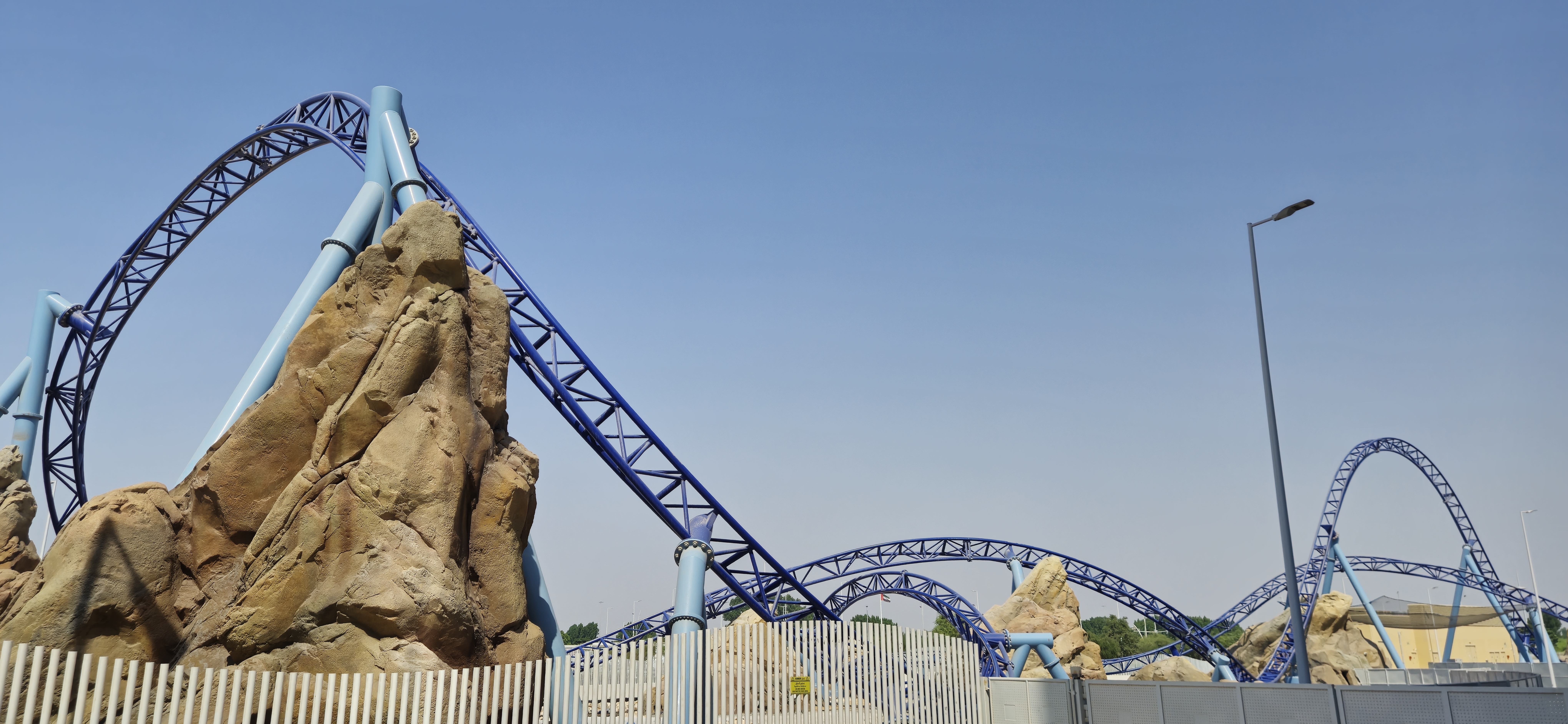 Der Park liegt in direkter Nähe zu den anderen Parks in Abu Dhabi auf Yas Island, im Hintergrund ist Formula Rossa zu erkennen