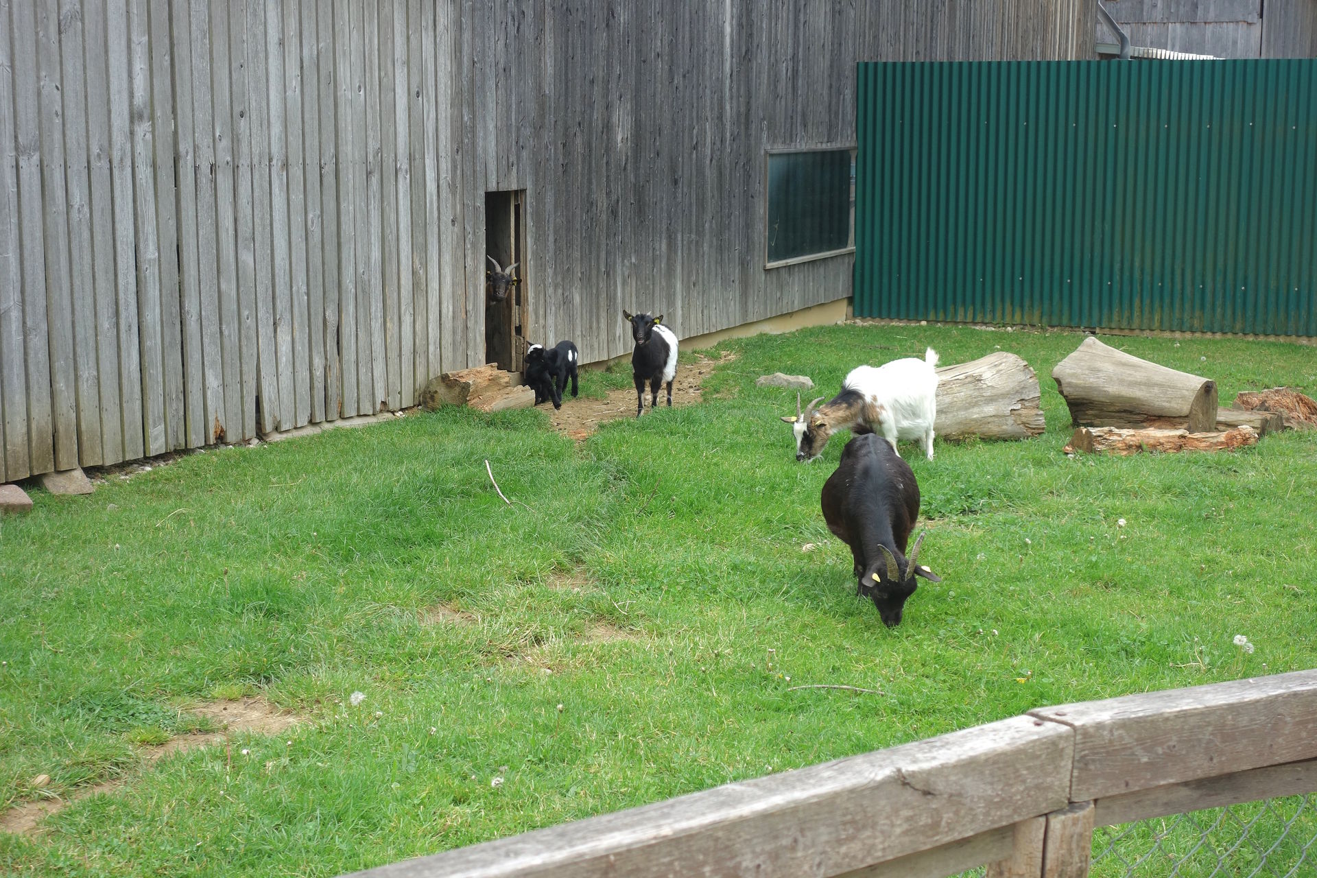 Nebenan stehen ein paar Kleintierkäfige und weiter hinten findet sich auch ein Schafsgehege.