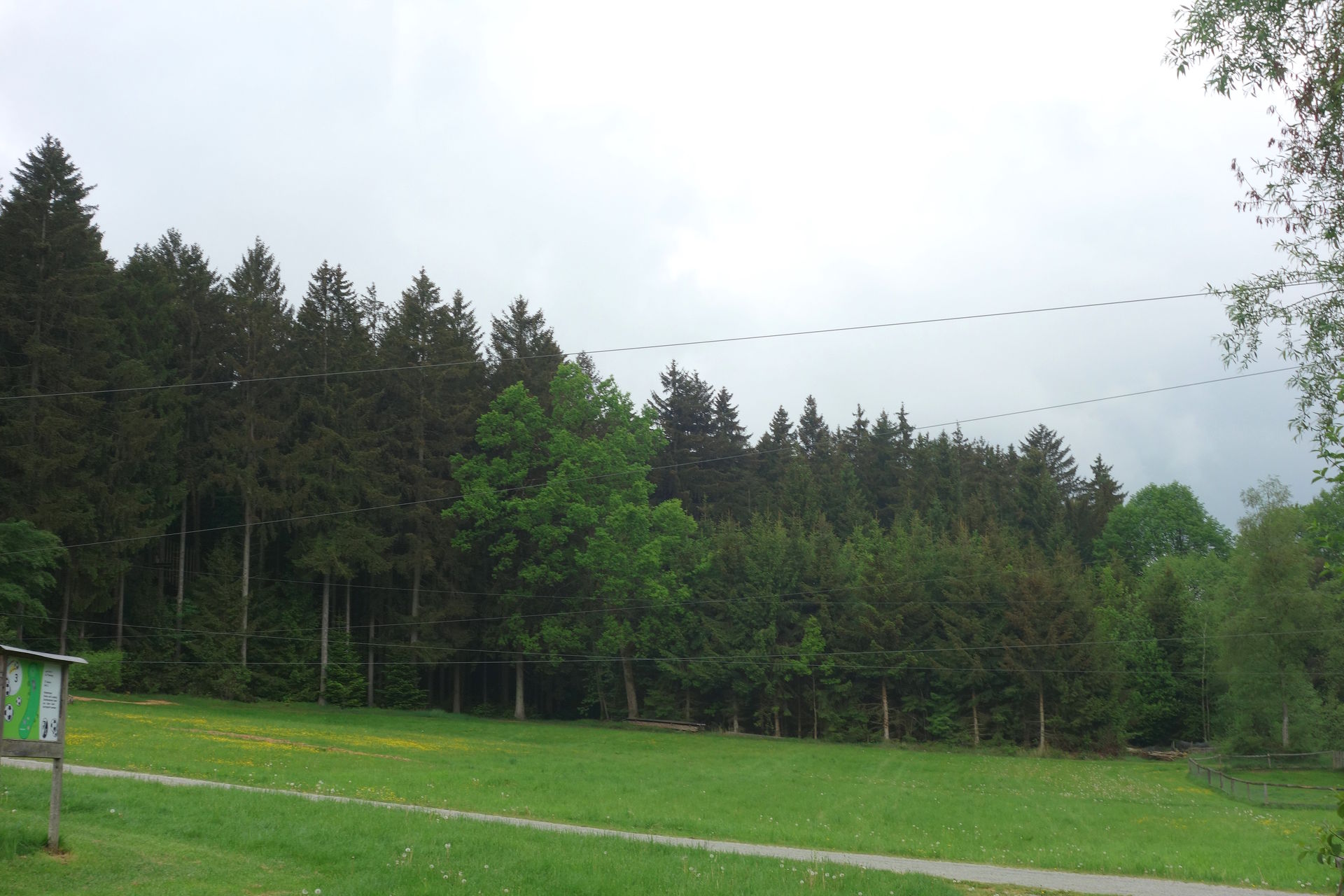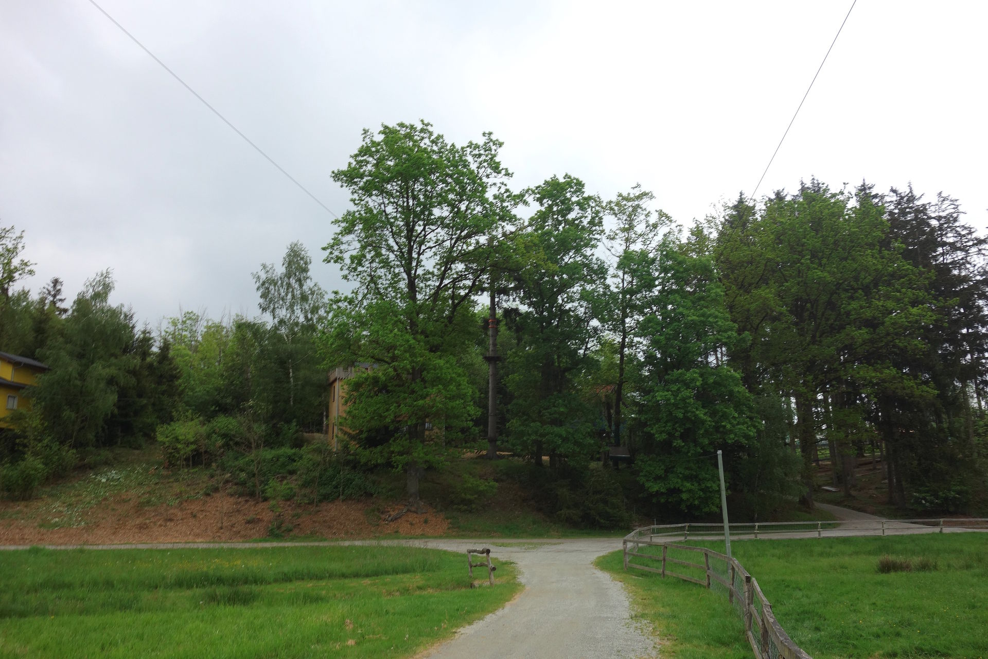 Im angrenzenden Wald versteckt sich der Kletterpark. Hier sind die drei Flying Fox mit je 150 Metern Länge zu sehen.