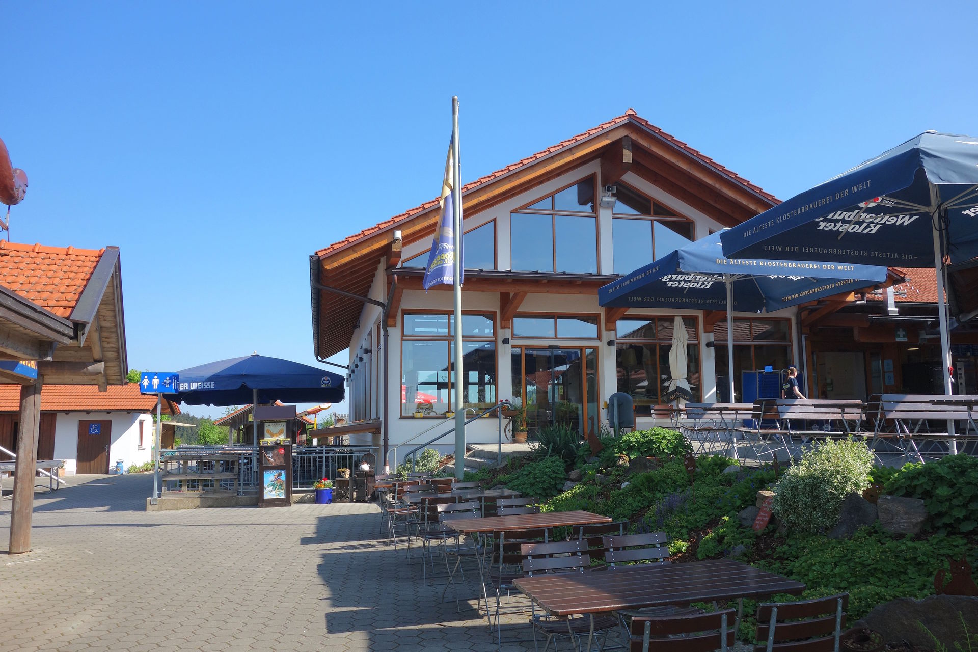 Das an die Rodelbahn-Stationen angeschlossene Egidi-Stüberl wurde 2017 neu gebaut, die nicht zu sehende Indoor-Spielhalle dahinter 2013.