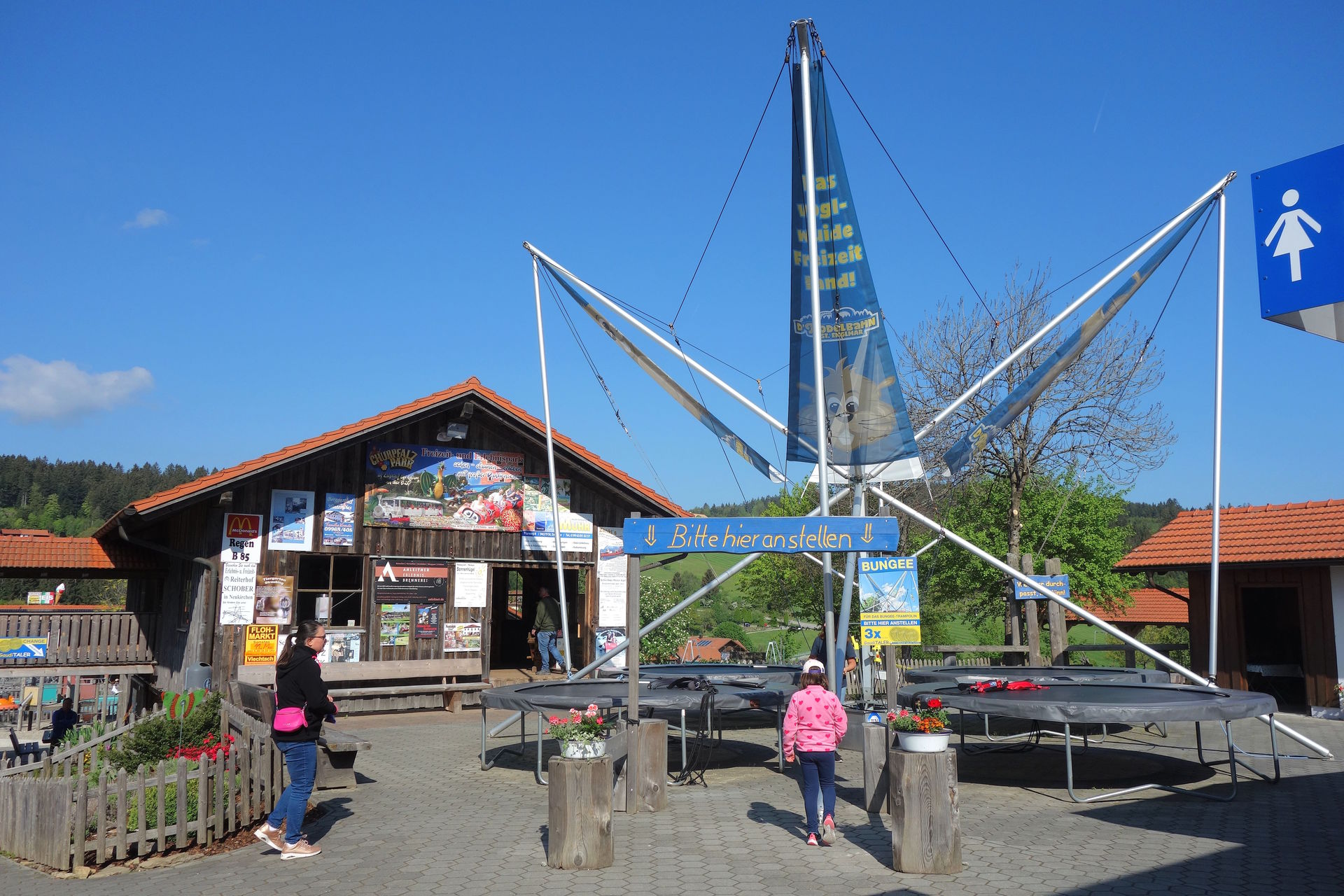 Bungee-Trampoline gibt es laut Google Earth mindestens seit 2004, ebenso wie die Spielscheune dahinter.