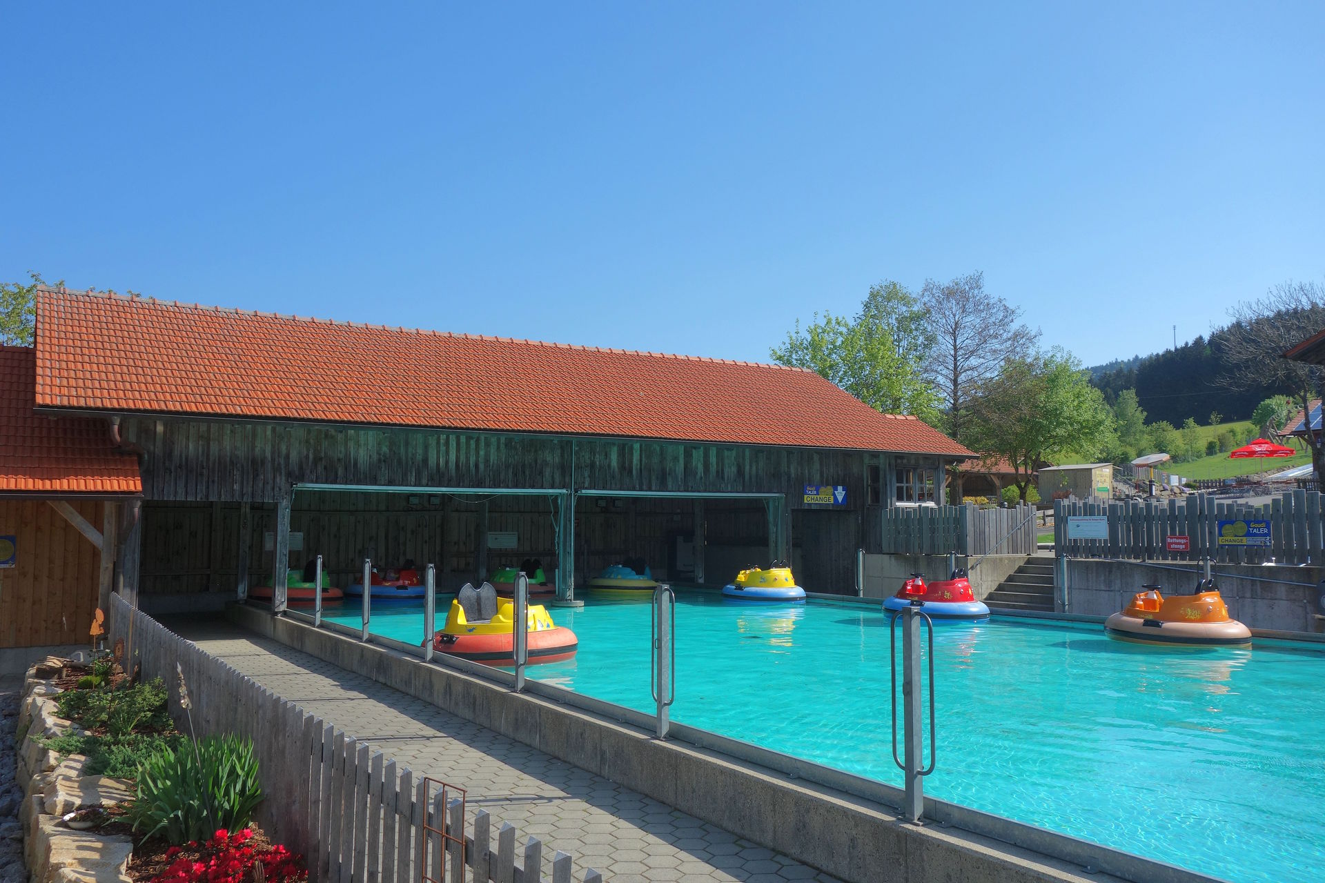 Vorbei an den Bumper-Boats machten wir uns gegen 9:40 Uhr wieder auf den Weg zurück zum Parkplatz.
