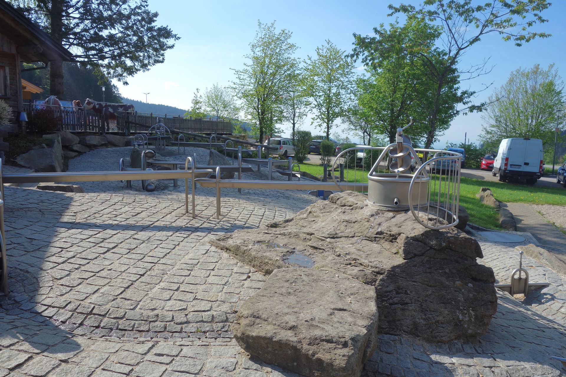 Zwischen Spielscheune, Kletterspielplatz und weiteren Imbissen wurde 2015 ein Wasserspielplatz errichtet.