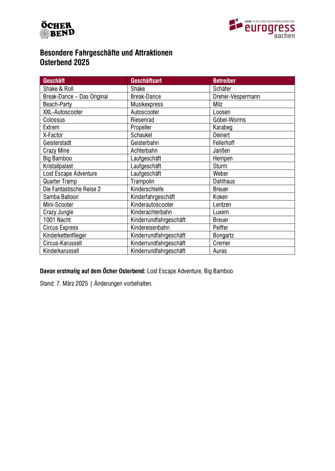 19.04.2025 - 05.05.2025 Frühjahrsbend in Aachen