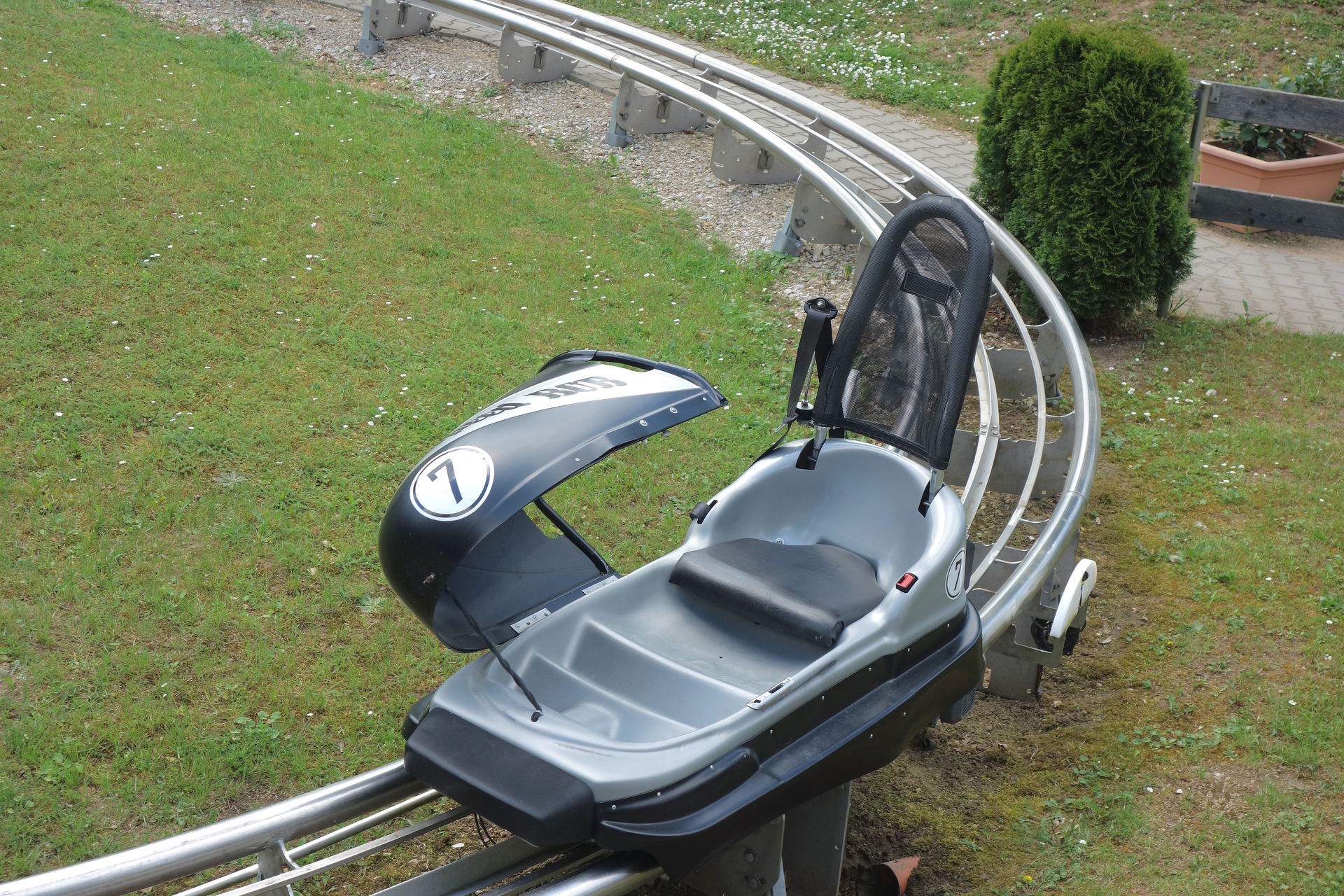 Bis zu 60 km/h soll man dabei erreichen, ehe man nach dem dritten Hügel in die kräftige Magnetbremse rauscht.