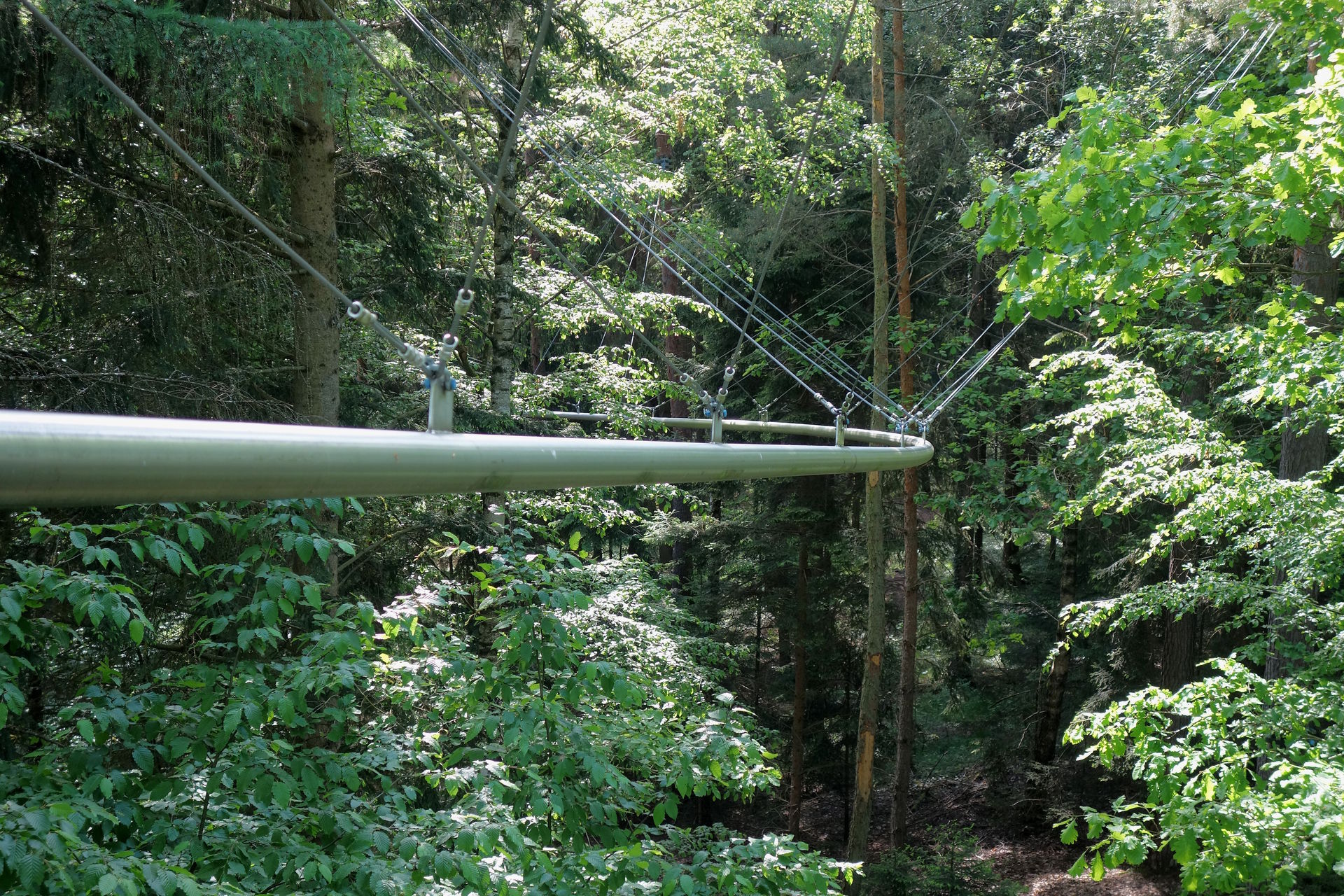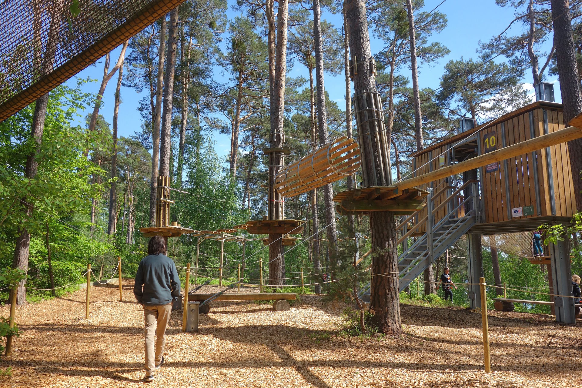 Mehrere Parcours führen in zwei bis vierzehn Meter Höhe quer durch den Wald - seit 2020 mit umhängefreiem Sicherungssystem.