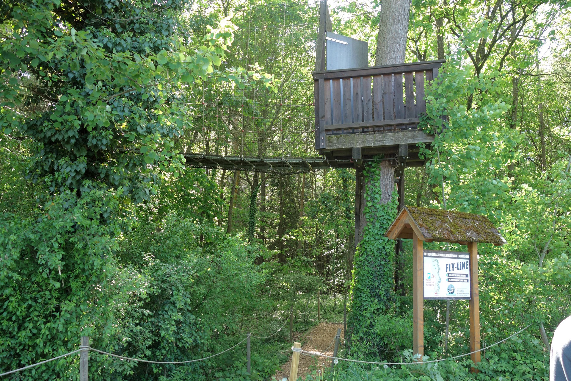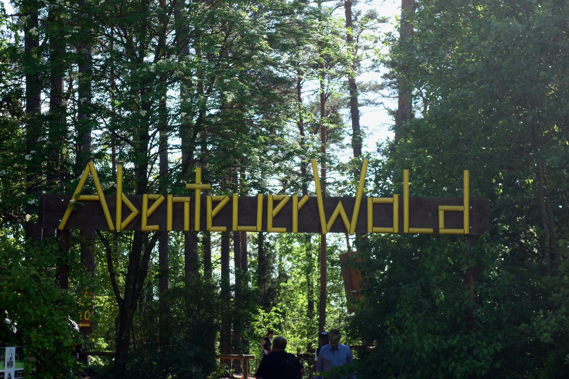 Der Abenteuerwald war das dritte Ziel, das ich (in diesem Fall eben ohne Antwort) bezüglich Öffnungszeiten angeschrieben hatte. Denn die Webseite gibt absolut keine Betriebszeiten her, man kann sie sich höchstens anhand der verfügbaren Reservierungs-Zeitfenster für den Kletterwald erschließen. Sofern man deren Darstellung versteht, was mir erst jetzt im Nachhinein gelungen ist. Die letzte Reservierung wäre nämlich für 16 Uhr möglich gewesen, sodass bei zweistündiger Kletterzeit wohl bis 18 Uhr geöffnet war. Fraglich bleibt nun, ob man auch nach 16 Uhr noch eine Fly-Line-Fahrt an der Kasse hätte buchen können. Denn obiges Bild entstand kurz vor unserer Abreise gegen 16:30 Uhr. Eine Stunde zuvor hatten wir uns noch in eine lange Schlange einreihen müssen (ob die Wartenden alle eine Reservierung hatten, ist mir nicht bekannt). Zwischenzeitlich wurden schonmal Zettelchen durchgereicht, auch wir füllten eines davon brav aus - was für die reine Fly-Line-Fahrt aber gar nicht nötig gewesen wäre.