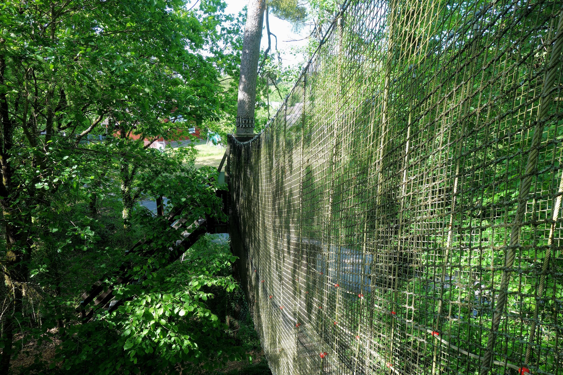 Man muss einfach nur die Treppe rauf und über die Hängebrücke gehen. Das nötige Geschirr bekommt man direkt am Start angelegt.