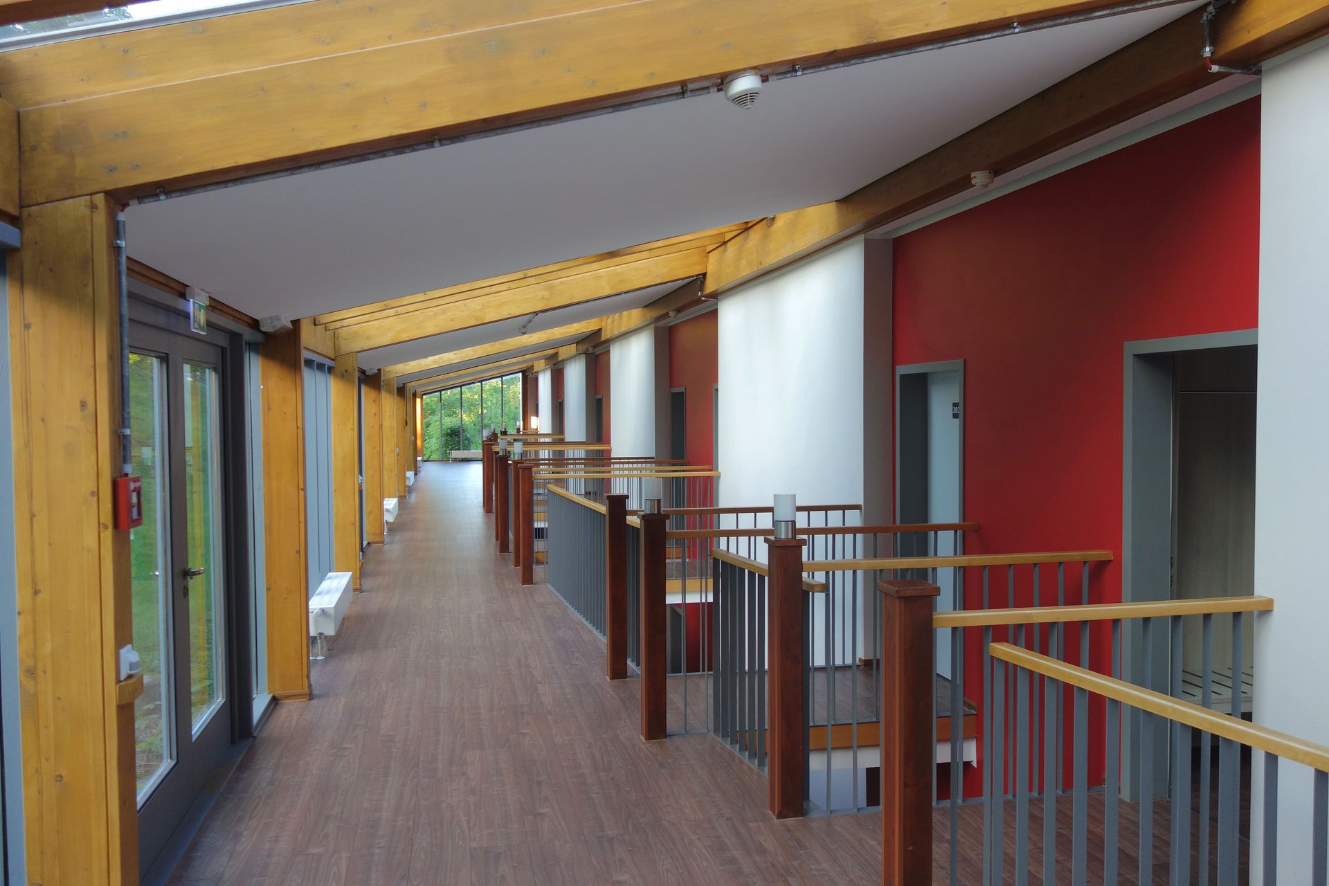 Auf der Autobahnseite befindet sich der Motel-ähnliche Flur. 2017 war das gesamte Hotel renoviert worden.