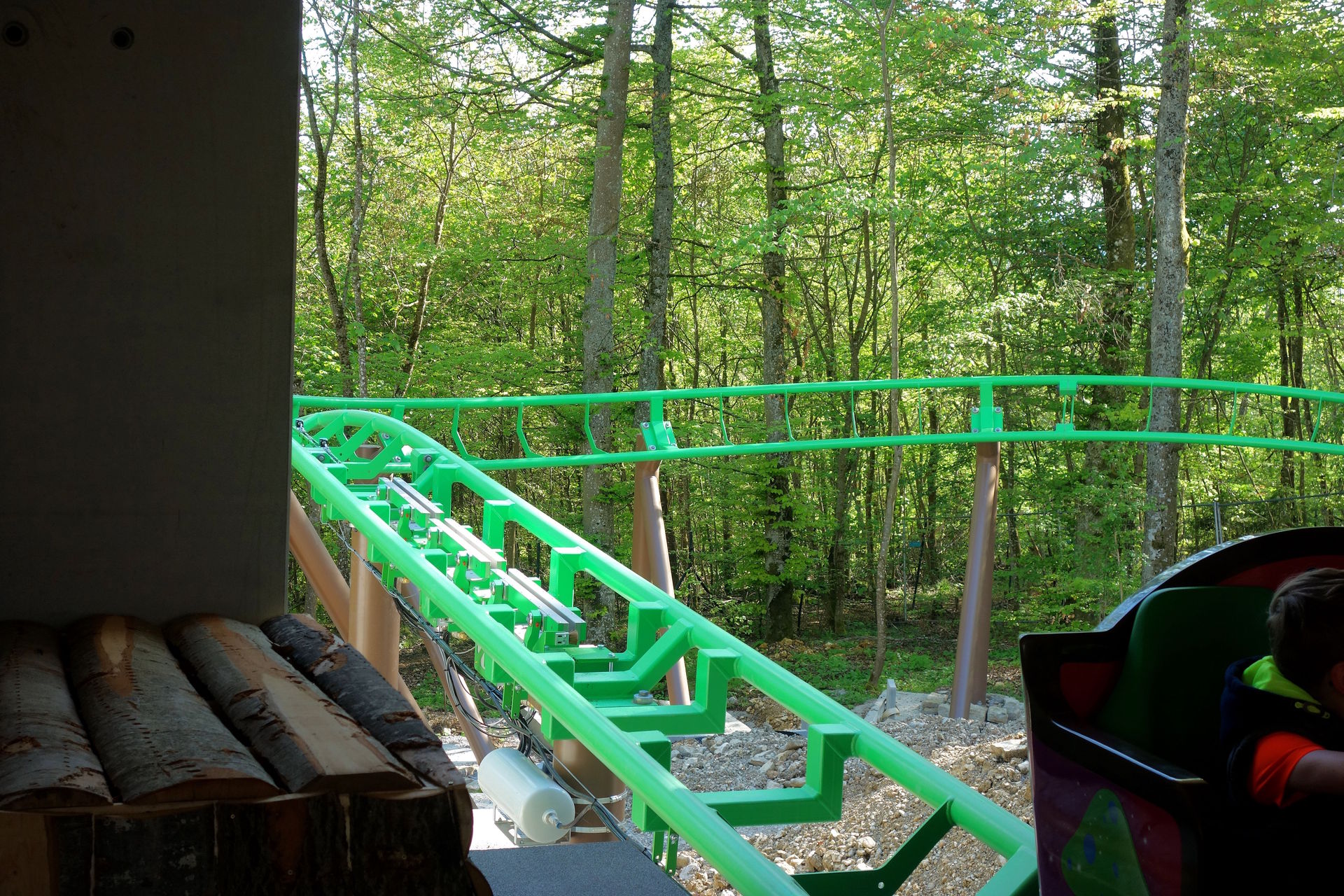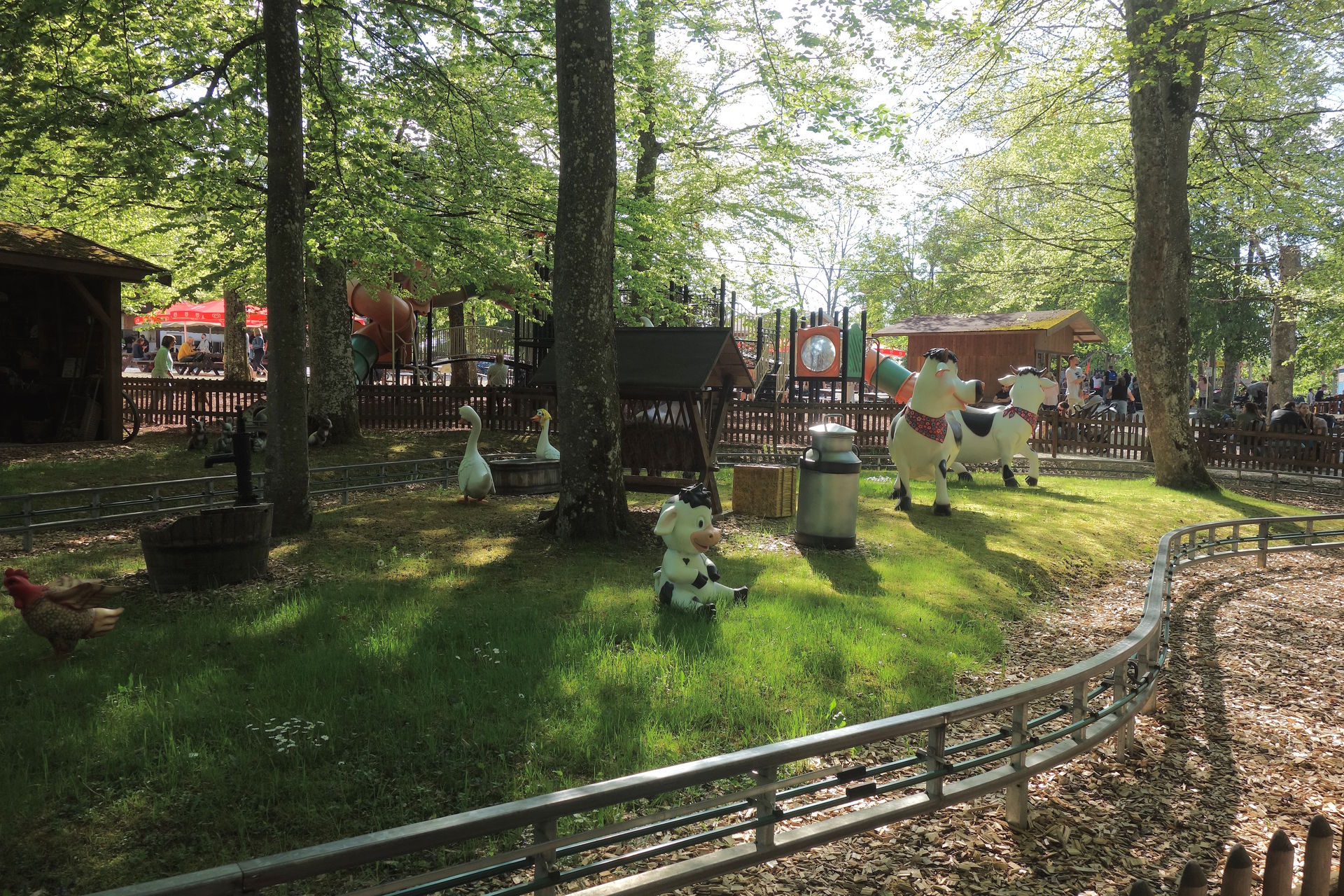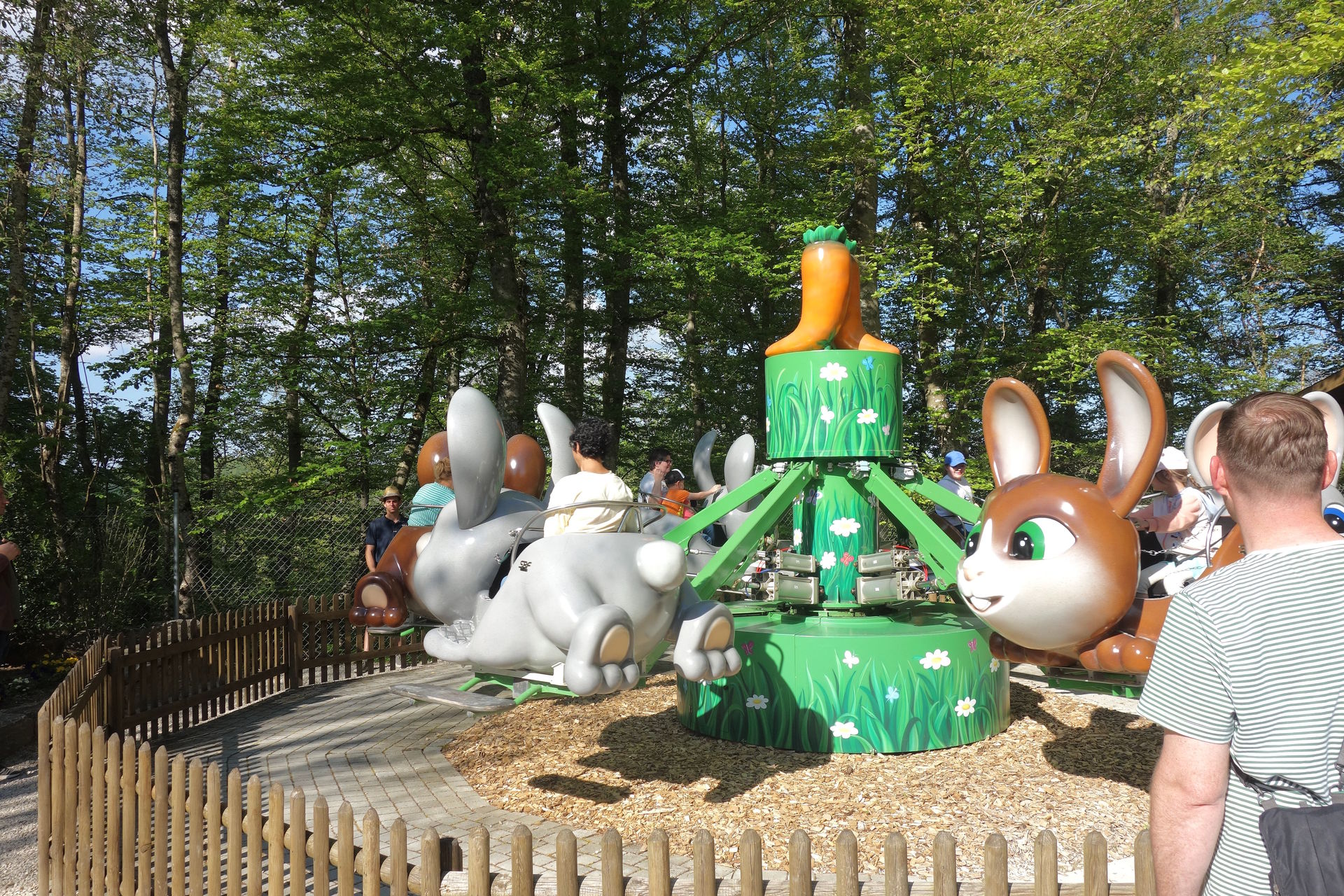 Zierer gleich neben dem Biberhopser) und den Pferde- bzw. Gokart-Parkour. Für die Saison 2024 wurde die kleine Baumstammtretbahn nun ebenfalls ausgemustert. Dafür kehrten die Pferde zurück, wenn auch als Attrappen. In Sini Binis Pferdeland können sich die kleinen Nachwuchs-Reiter nun um die Pferdenachbildungen kümmern und diese frisieren.
