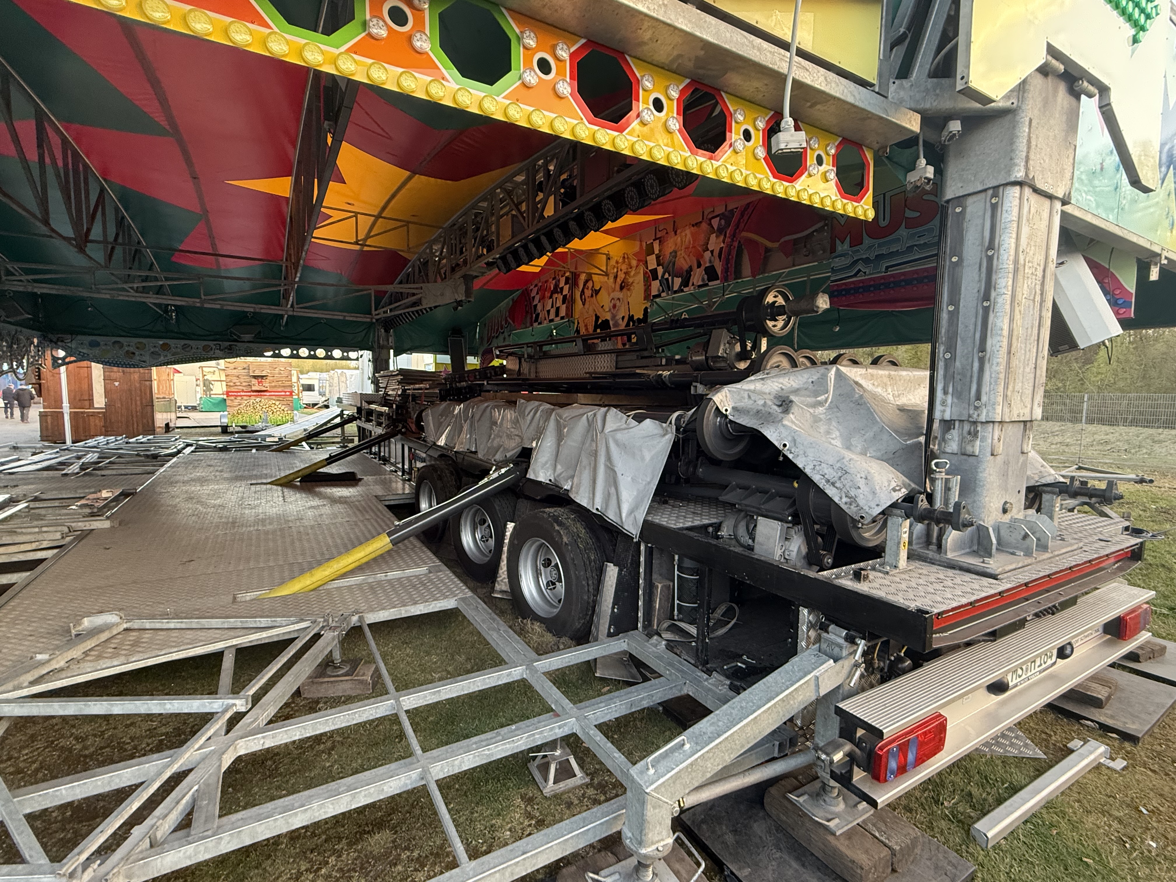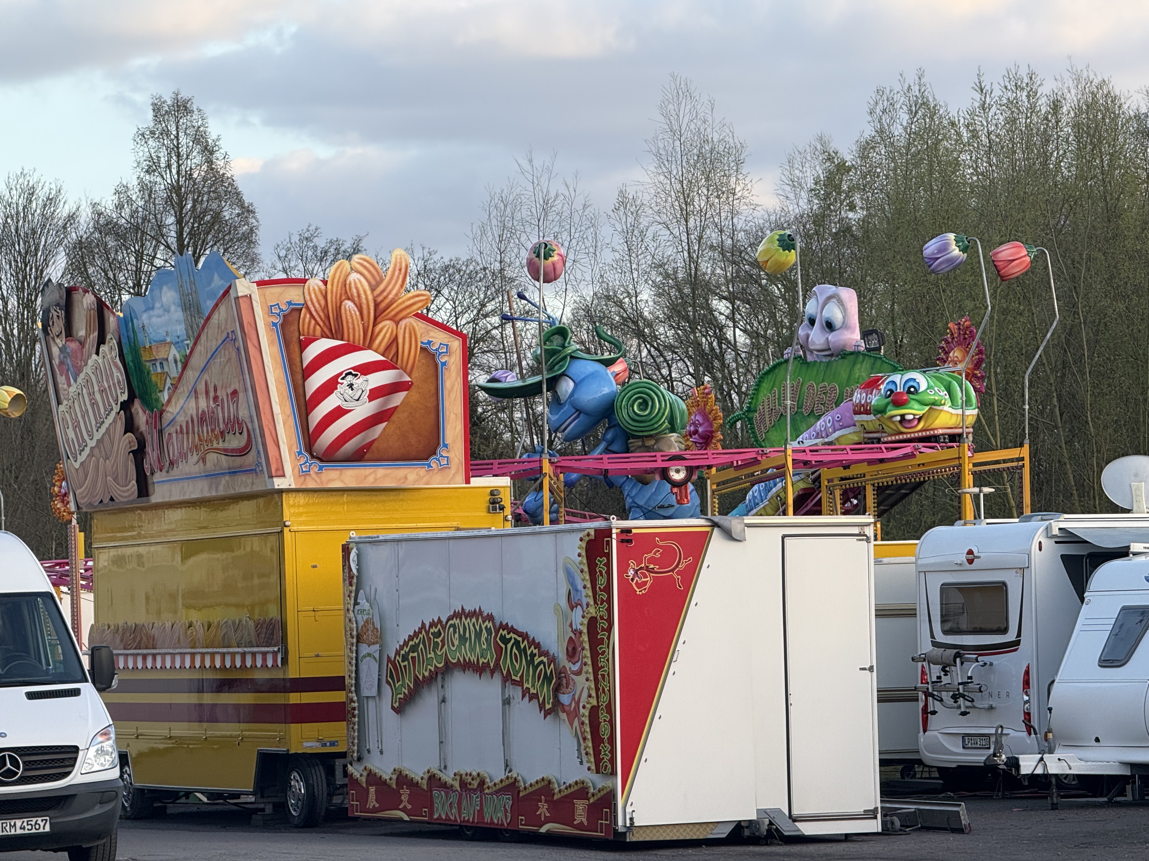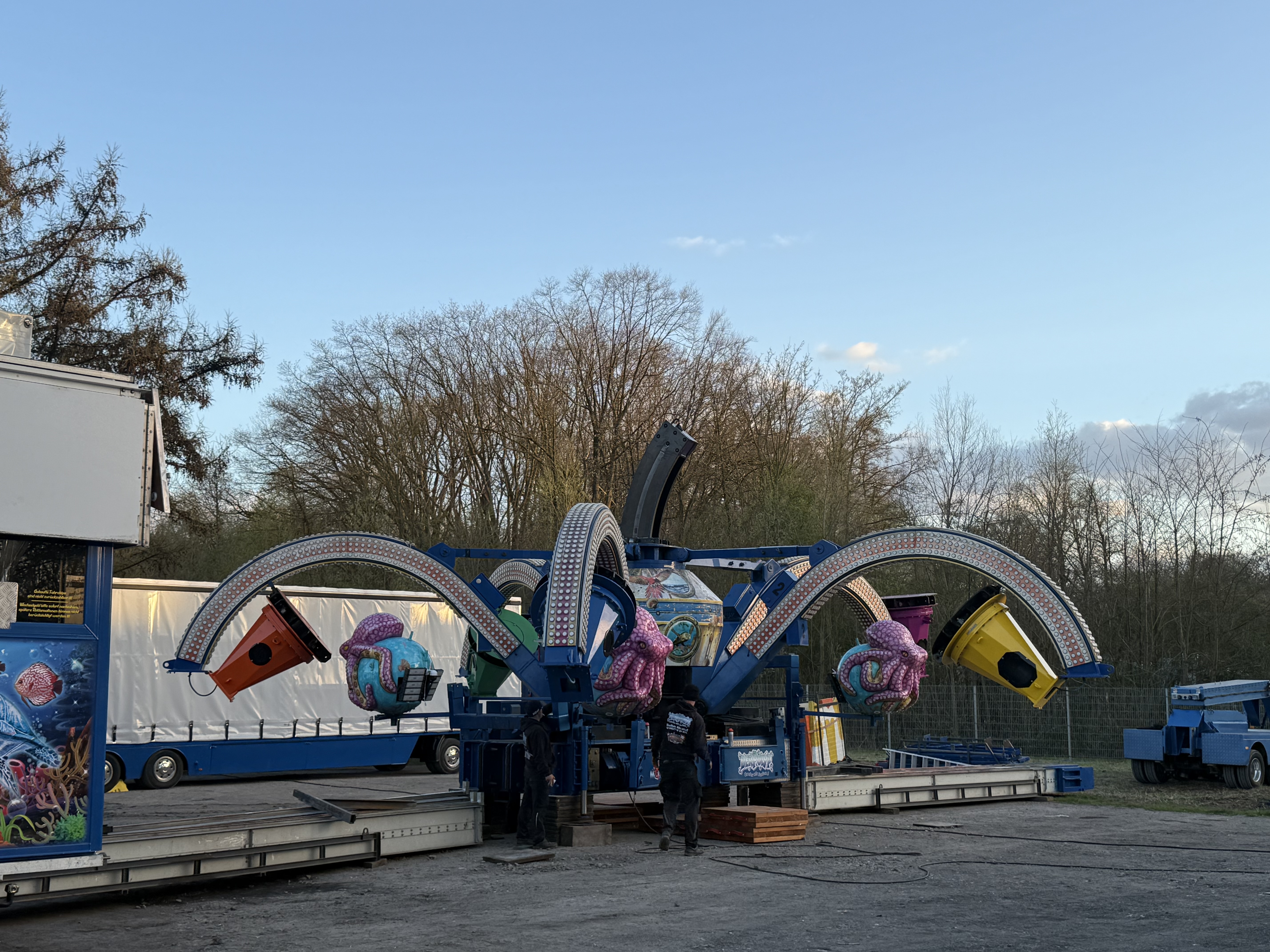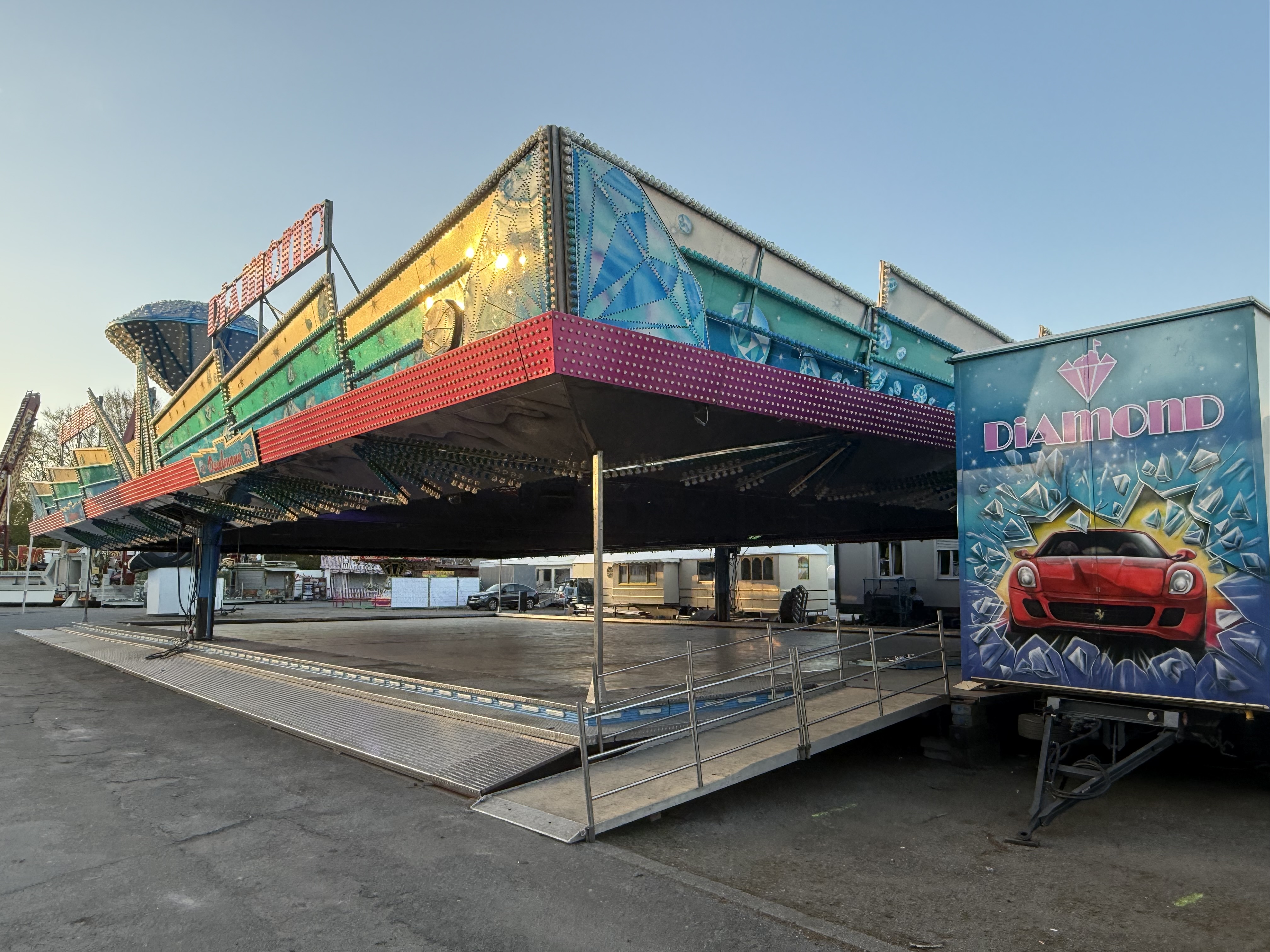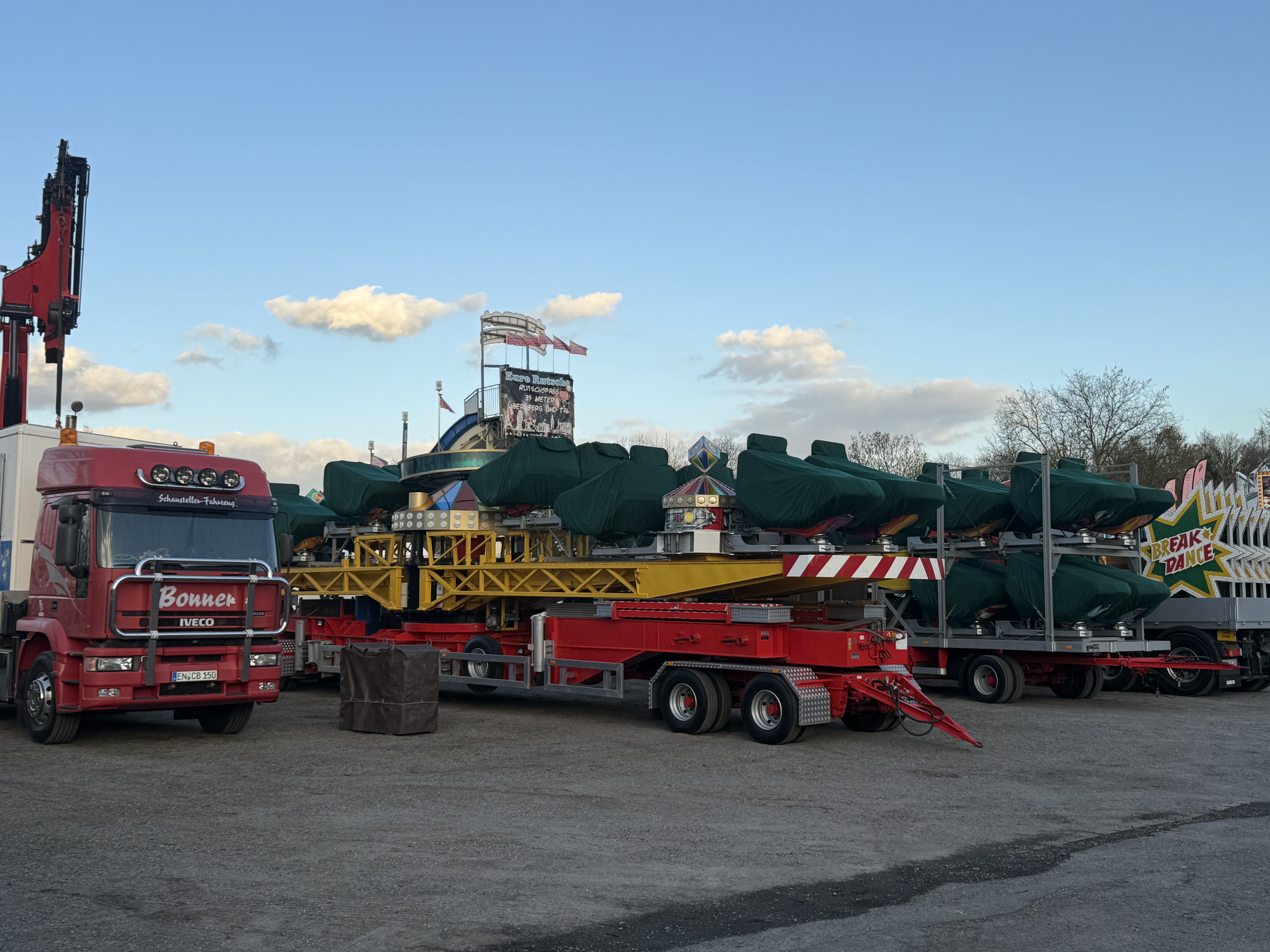 ... und heute stehen davon schon Transporte oder gar zum Teil aufgebaute Geschäftsteile dieser Fahr- und Laufgeschäfte in Recklinghausen.