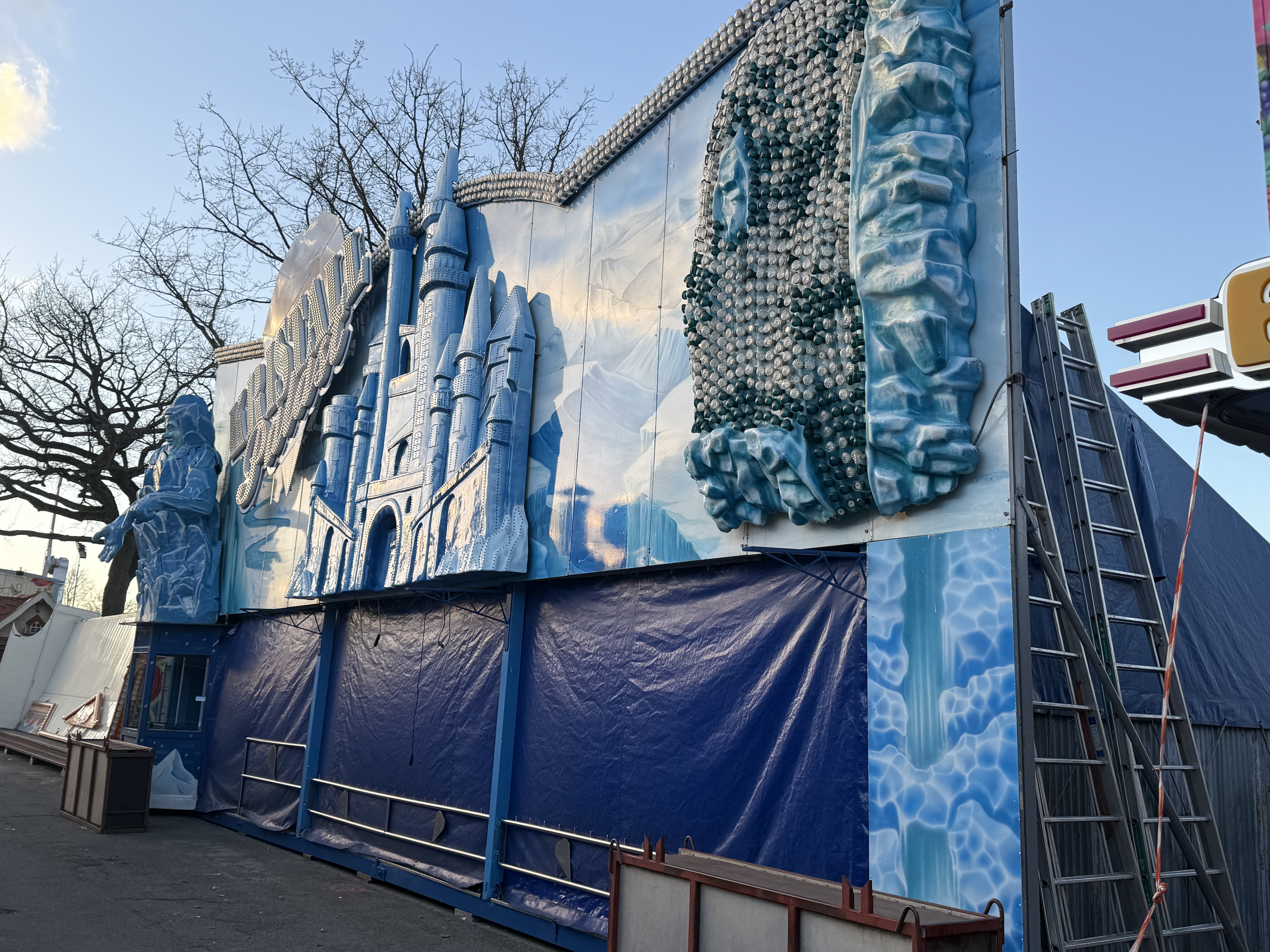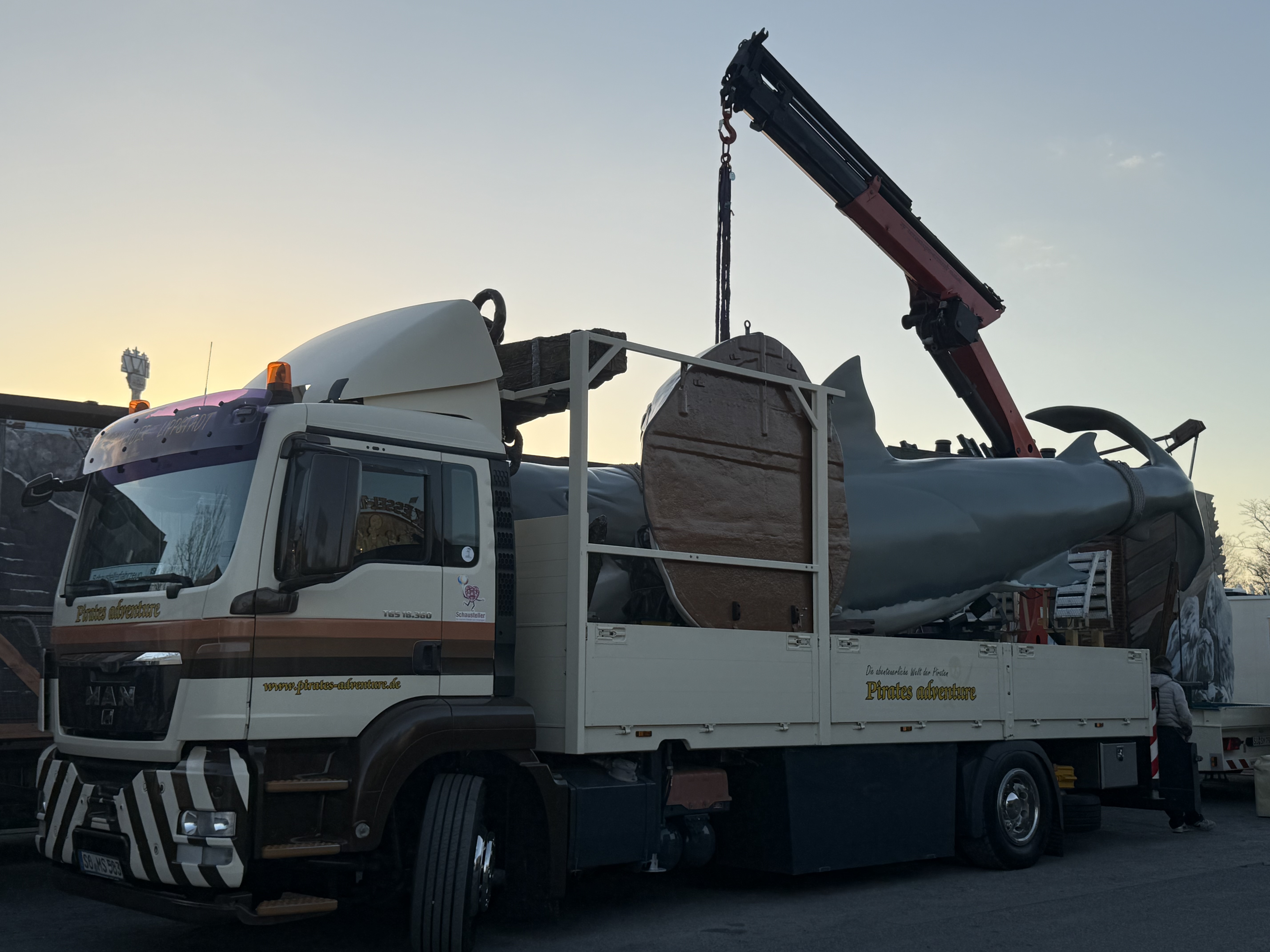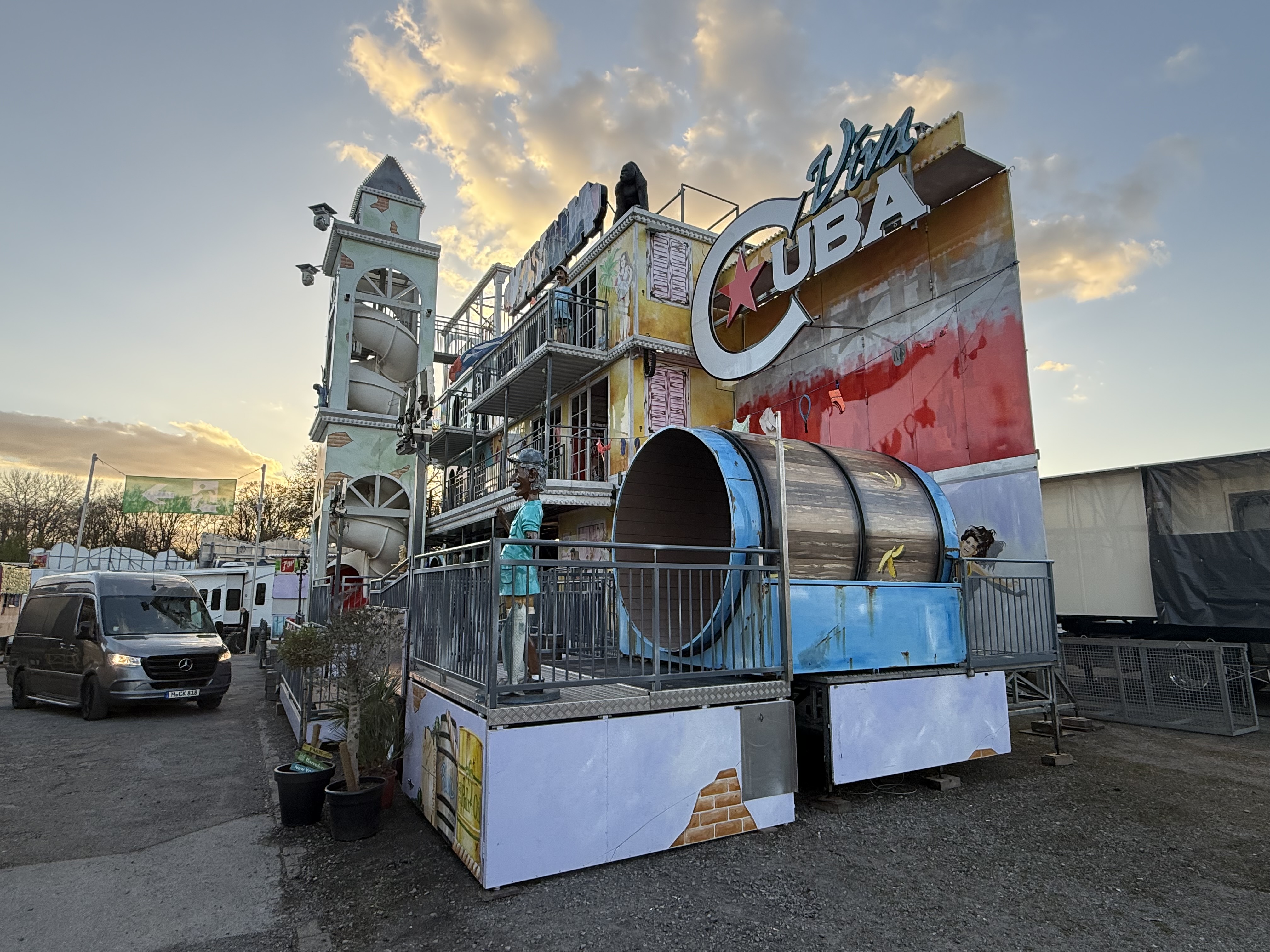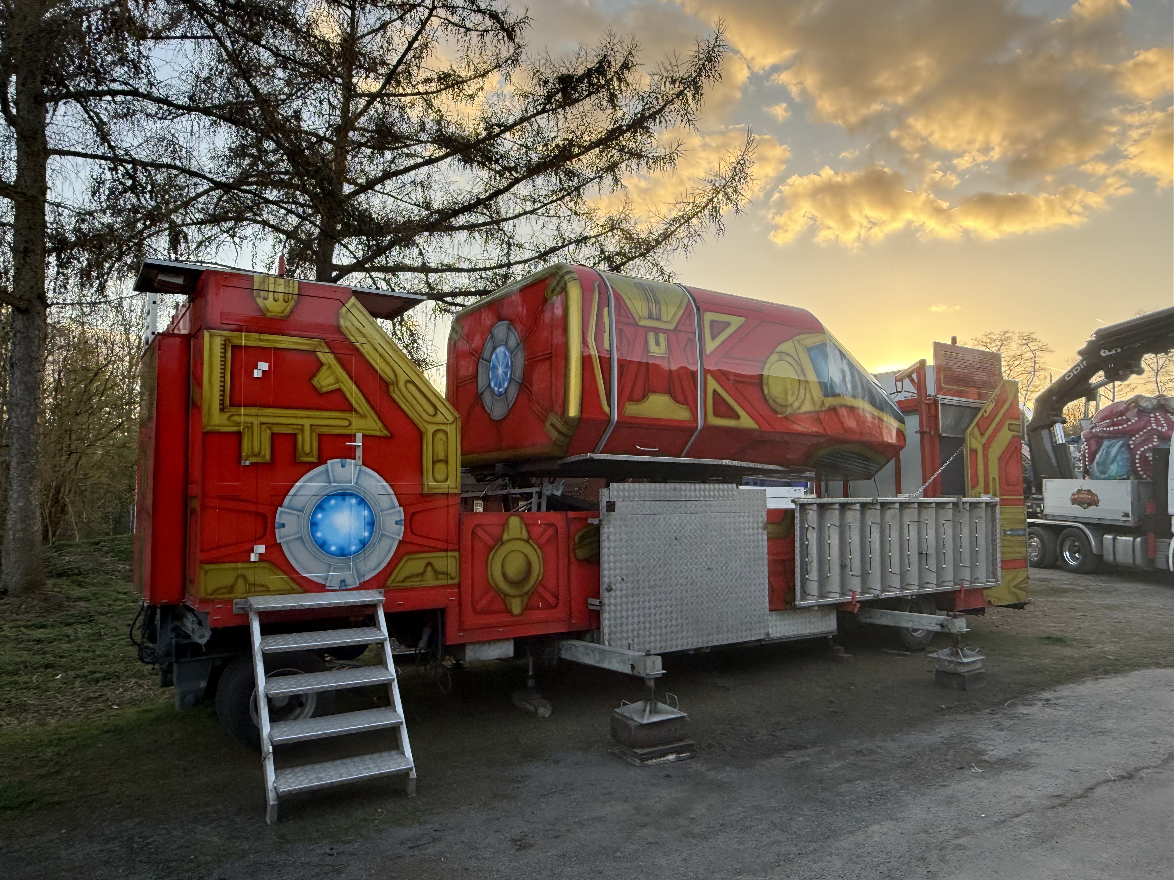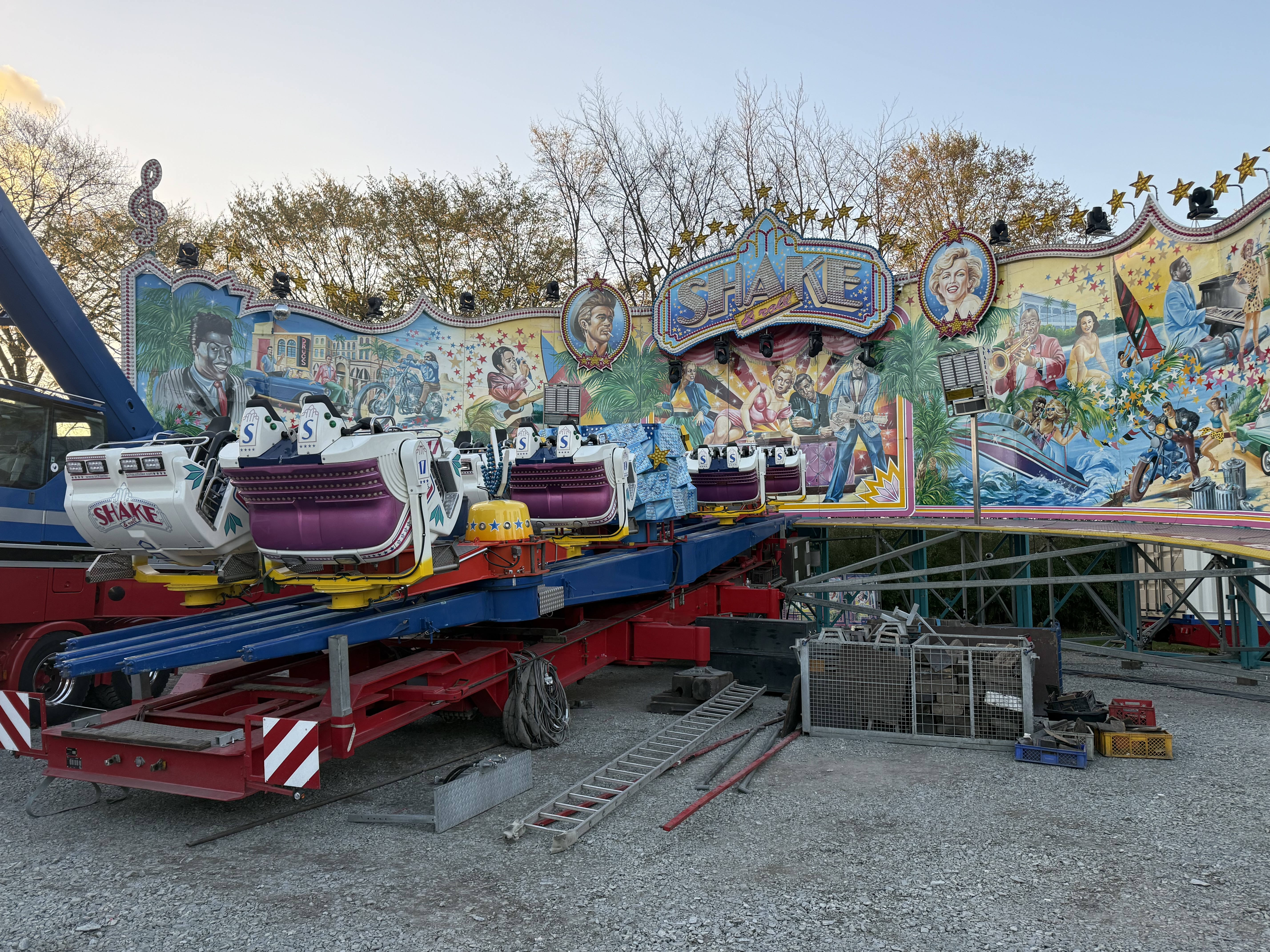 ... und heute stehen davon schon Transporte oder gar zum Teil aufgebaute Geschäftsteile dieser Fahr- und Laufgeschäfte in Recklinghausen.