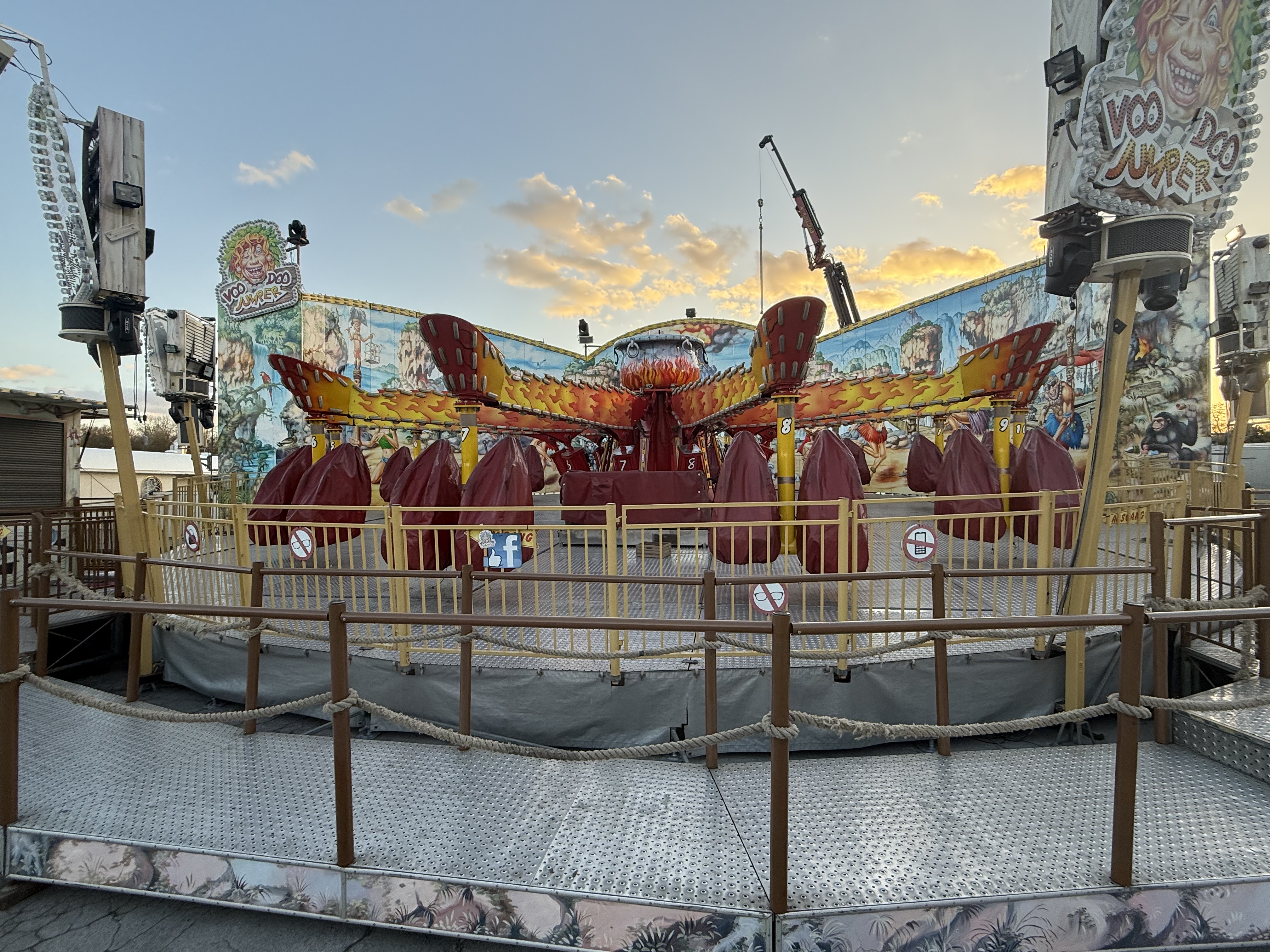 Ungewöhnlich auch der Platz vom Voodoo Jumper. In den letzten Jahren eher Platz für ein Hochfahrgeschäft wie Star-Flyer oder Wildwasserbahn steht es nun auf dem Kopfplatz, wenn man den Zugang über die Vestlandhalle auf den Platz nimmt. Am angestammten Voodoo-Jumper-Platz steht nun die Schlittenfahrt von Burgdorf.