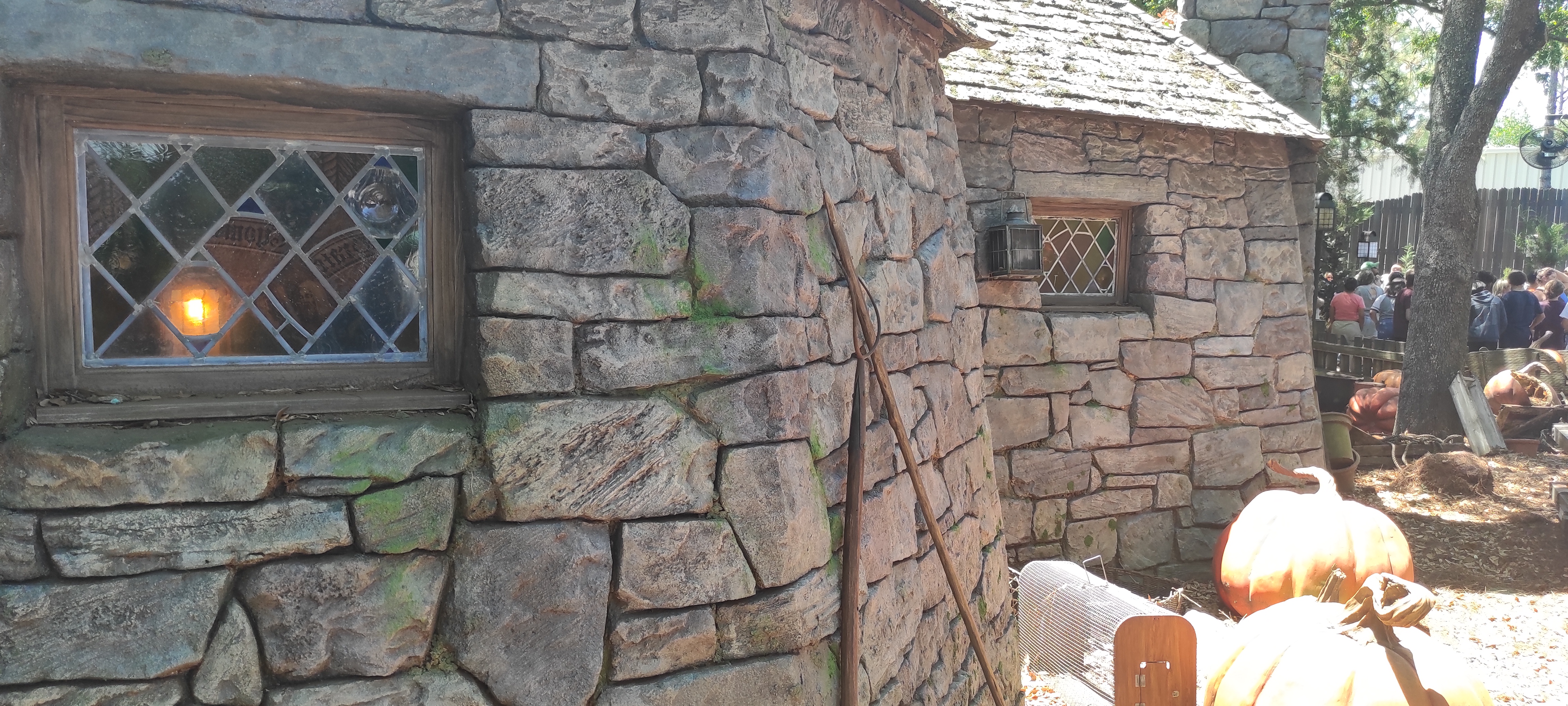 Von der Bahn selbst gibt es nicht viel zu sehen, die Warteschlange führt außen vorbei an Hagrid's Hütte und den Großteil dieses äußeren Bereichs steht man ungeschützt in der prallen Sonne, was schon echt grenzwertig war.