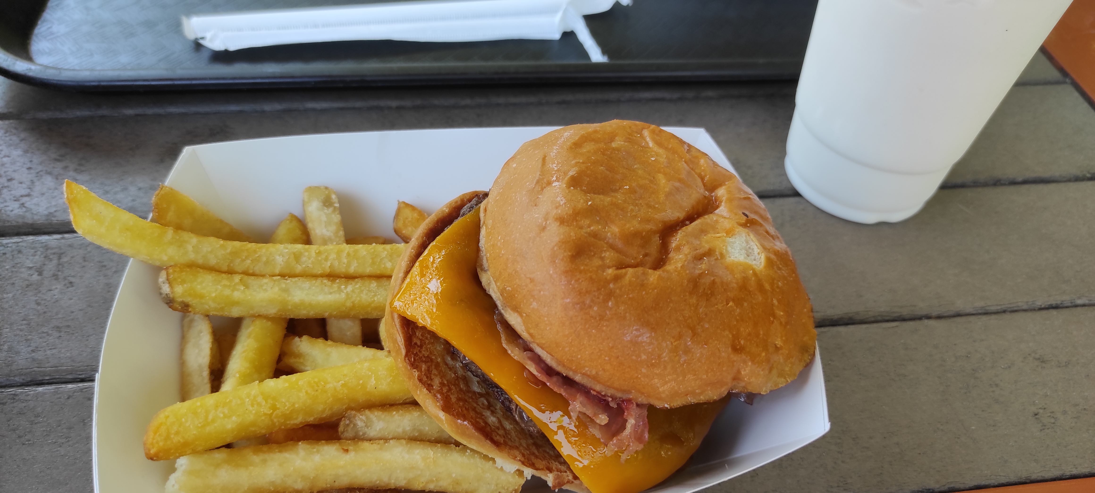 Danach gab es erstmal eine Stärkung in Form von einem Burger mit Pommes bei Burger Digs welches sich im Jurassic Park Welcome Center befand. Verdammt lecker, und eine riesige Auswahl an Getränken.